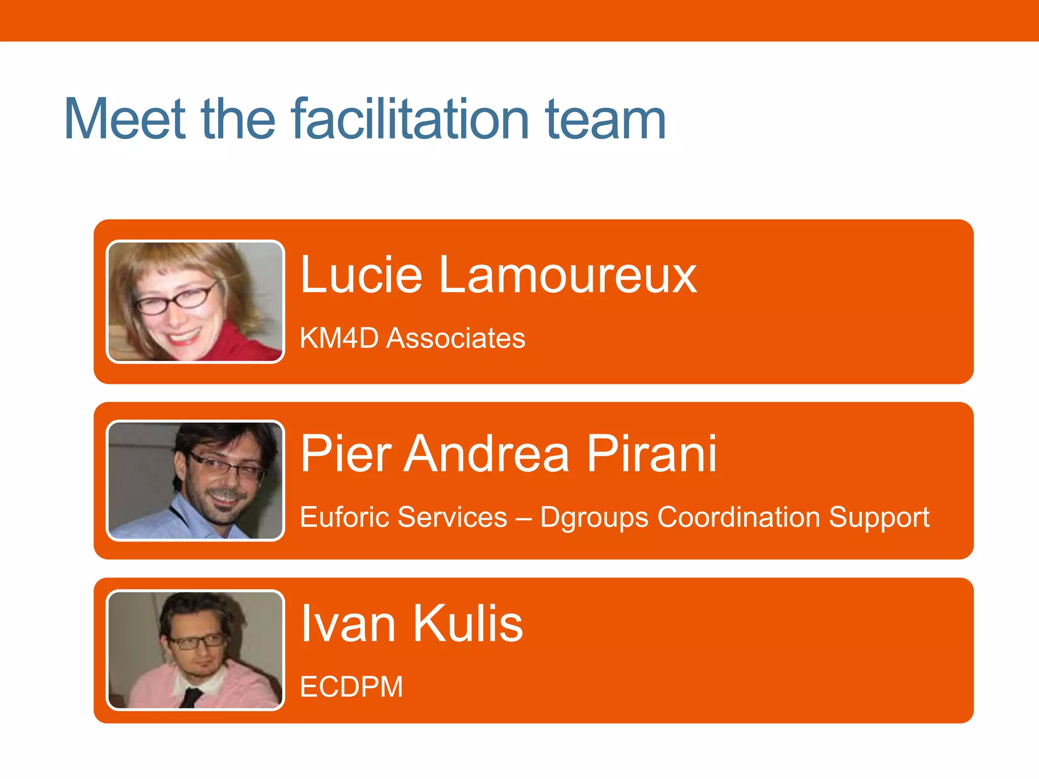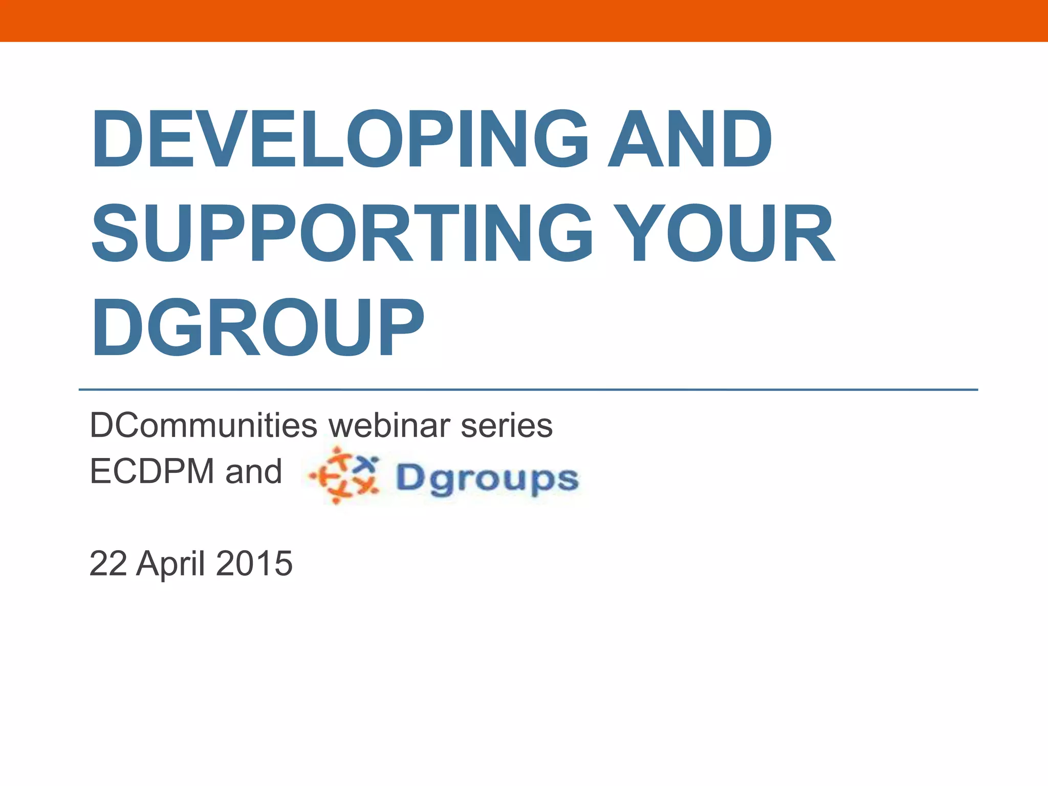 The document outlines a webinar series aimed at supporting dgroup communities, focusing on effective facilitation and community engagement. It covers common challenges, strategic drivers for knowledge sharing, and essential facilitation techniques to enhance member participation. The webinar emphasizes the importance of purpose and relevance in fostering successful online communities.