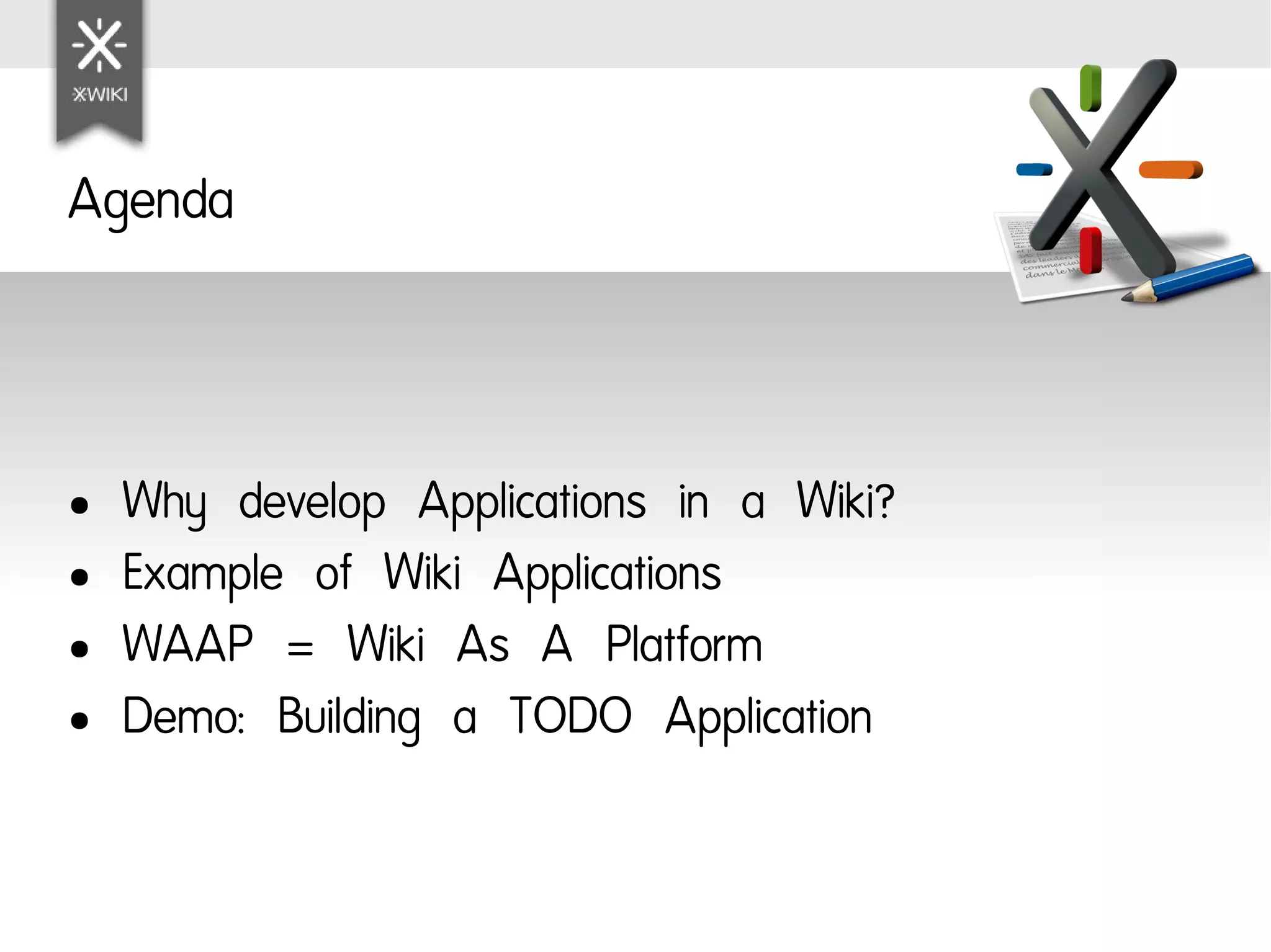 The document discusses the benefits of developing applications in a wiki environment, highlighting advantages such as collaborative development, quick turnaround times, and cost-effectiveness. It provides examples of applications built using the XWiki platform, like expense reports and employee evaluations. The presentation also introduces the concept of 'wiki as a platform' (WAAP) and includes a demonstration of building a todo application.