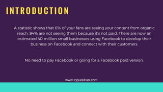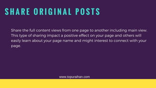 Facebook is a large social media platform for the business owner, entrepreneurs and for fan page users. At the very first step, people don't want Facebook Paid Ad Campaign. Rather, they should follow these steps for organic reach and increasing followers on Facebook. These are the bullet methods for Facebook Free Marketing.