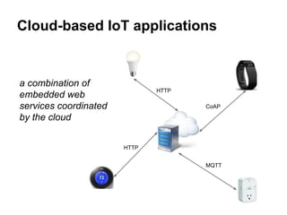 The document discusses developing IoT applications using fog computing, addressing challenges like timeliness, scalability, and heterogeneity. It highlights a distributed dataflow approach for executing tasks locally and efficiently while accommodating various device constraints. The conclusion asserts that fog computing presents new opportunities and challenges in IoT application development.