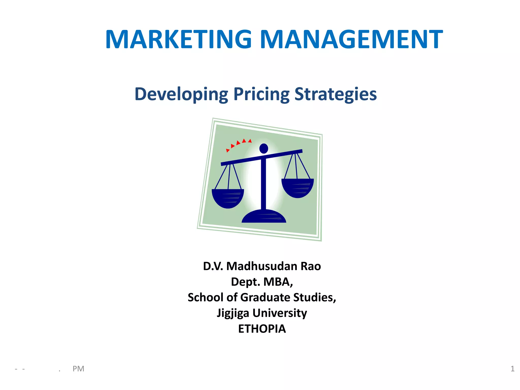 The document outlines various pricing strategies for marketing management, explaining how companies can set prices to maximize profits while considering production costs, customer value, and competitor pricing. It describes several pricing methods including market-skimming, penetration, and product mix pricing, emphasizing the importance of differentiation and value perception in pricing decisions. Additionally, the document discusses common pricing mistakes and factors influencing demand elasticity and consumer psychology regarding pricing.