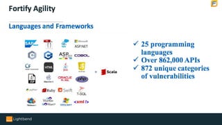 The document outlines a webinar discussing Fortify SCA, a static analysis tool for Scala development that helps identify issues before production. It highlights its compatibility with existing Scala compilers, supports multiple programming languages, and provides a detailed explanation of its operation, including translating, scanning, and viewing results. The tool requires a Fortify SCA license and a Lightbend subscription, with a preview version already available for select customers.