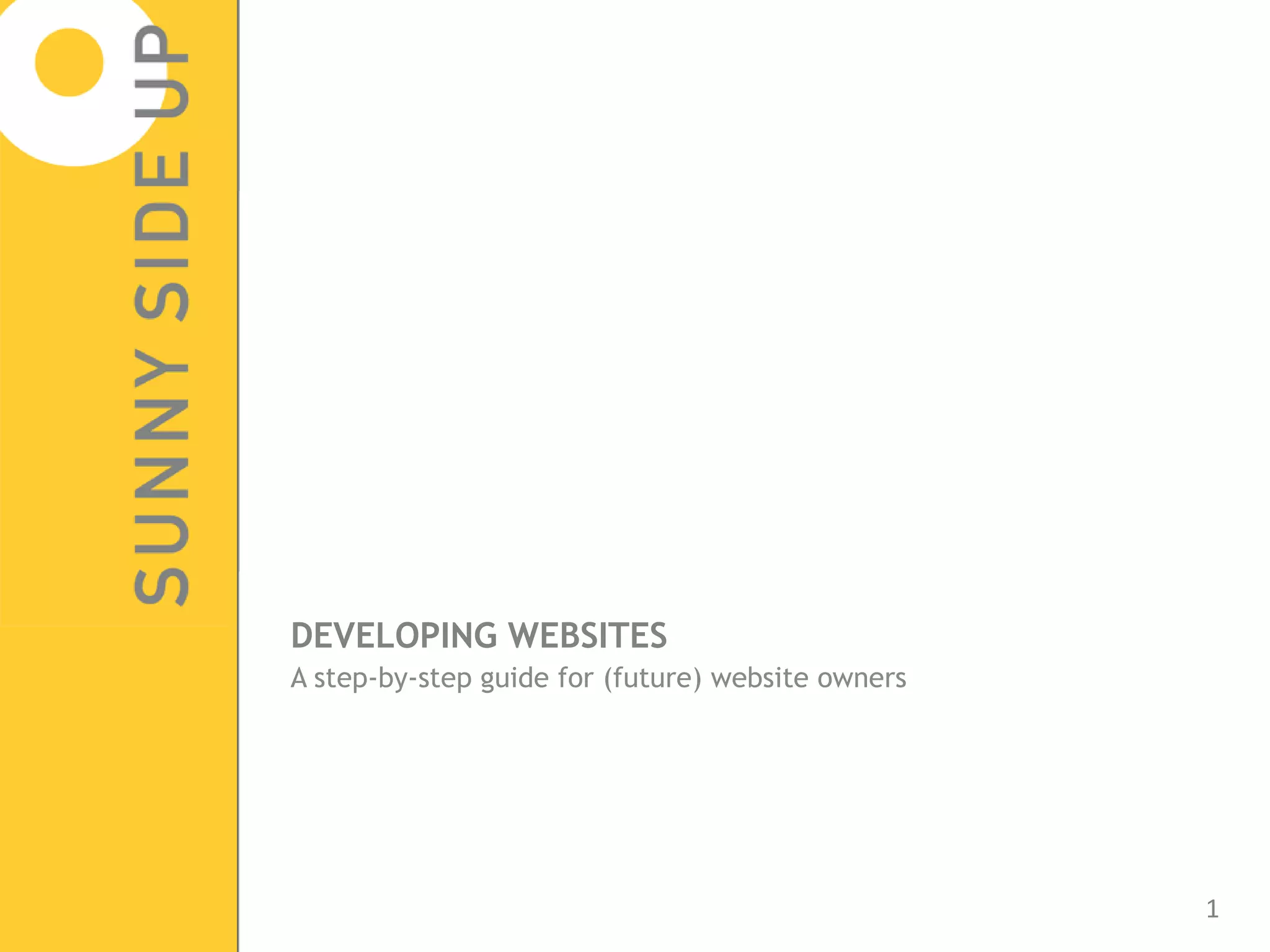 The document provides a step-by-step guide for creating a successful website, outlining key steps such as setting goals and a budget, purchasing domain hosting, designing templates and wireframes, adding content and functionality, testing, and launching the site. It emphasizes starting simply, reusing existing tools when possible, and continually improving and updating the site over time.