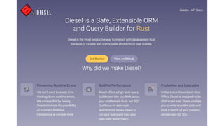 The document explores the use of Rust for developing web applications, highlighting its ecosystem and key features such as memory safety and zero-cost abstractions. It details the architecture and implementation of a comment server project using Rust, outlining various components including HTTP request handling, database access, and logging. The conclusion emphasizes the capabilities of Rust for web development, mentioning future adaptations like async/await and the rise of web assembly frameworks.