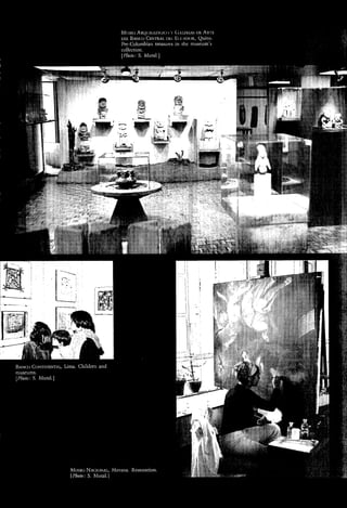 This article discusses museum development and cultural policy in Latin America and the Caribbean over the past 10 years. It notes the diversity of cultures and political/economic systems in the region and how museums are being called on to play a major role in developing awareness of cultural heritage. A 1972 conference marked a turning point, promoting an "integral museum" approach focused on interdisciplinarity and relating heritage to society's present needs. Since then, museums have increasingly taken on the challenge of making heritage relevant to contemporary development. The article seeks perspectives from regional experts on progress, challenges, and cultural policy priorities regarding museums.
