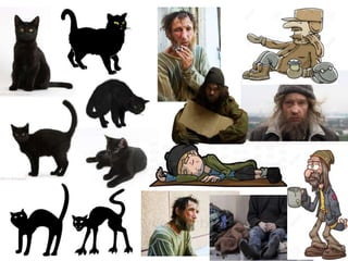 Original Script http://www.worldoftales.com/South_American_folktales/South_American_Folktale_34.html Onceupon a time there was a man who was very poor. He was so poor that he had to sell one thing after another to get food to keep from starving. After a while there was nothing left except the cat. He was very fond of his cat, and he said, “O, Cat, let come what will, I’ll never part with you. I would rather starve.” The cat replied, “O good master Domingo, rest in peace. You will never starve as long as you have me. I am going out into the world to make a fortune for us both.” The cat went out into the jungle and dug and dug. Every time he dug he turned up silver pieces. The cat took a number of these home to his master so that he could purchase food. The rest of the pieces of silver the cat carried to the king. The next day the cat dug up pieces of gold and carried them to the king. The next day he carried pieces of diamonds. “Where do you get these rich gifts? Who is sending me such wonderful presents?” asked the king. The cat replied, “It is my master, Domingo.” Now the king had a beautiful daughter. He thought that this man Domingo must be the richest man in the whole kingdom. He decided that his daughter should marry him at once. He made arrangements for the wedding through the cat. “I haven’t any clothes to wear at the wedding,” said Domingo when the cat told him that he was to marry the daughter of the king. “Never mind about that. Just leave it to me,” replied the cat. The cat went to the king and said, “O King, there has been a terrible fire in the tailor shop where they were making the wedding garments of my master, Domingo. The tailor and all of his assistants were burned to death, and the entire outfit of my master Domingo was destroyed. Hasn’t your majesty something which you could lend him to wear at the wedding?” The king sent the richest garments which his wardrobe afforded. Domingo was clothed in state ready for the wedding. “I have no palace to which to take my bride,” said Domingo to the cat. “Never mind. I’ll see about it at once,” replied the cat. The cat went into the forest to the great castle where the giant dwelt. He marched straight up to the big giant and said, “O Giant, I wish to borrow your castle for my master Domingo. Will you not be so kind as to lend it to me a little while?” The giant was very much insulted. “No, indeed, I’ll not lend my castle to you or your master Domingo or anybody else,” he shouted in his most terrible voice. “Very well, then,” replied the cat. He changed the giant to a piece of bacon in the twinkling of an eye and devoured him on the spot. The palace of the giant was a very wonderful palace. There was one room decked with silver, and one room decked with gold, and one room decked with diamonds. A beautiful river flowed by the garden gate. As Domingo and his bride sailed down the river to the garden gate in the royal barge, they saw the cat sitting in the window singing. After that they never saw him again. He disappeared in the jungle and went to make some other poor man rich. Perhaps he will come your way some day. Who knows? “Quem sabe?” they say in Brazil.