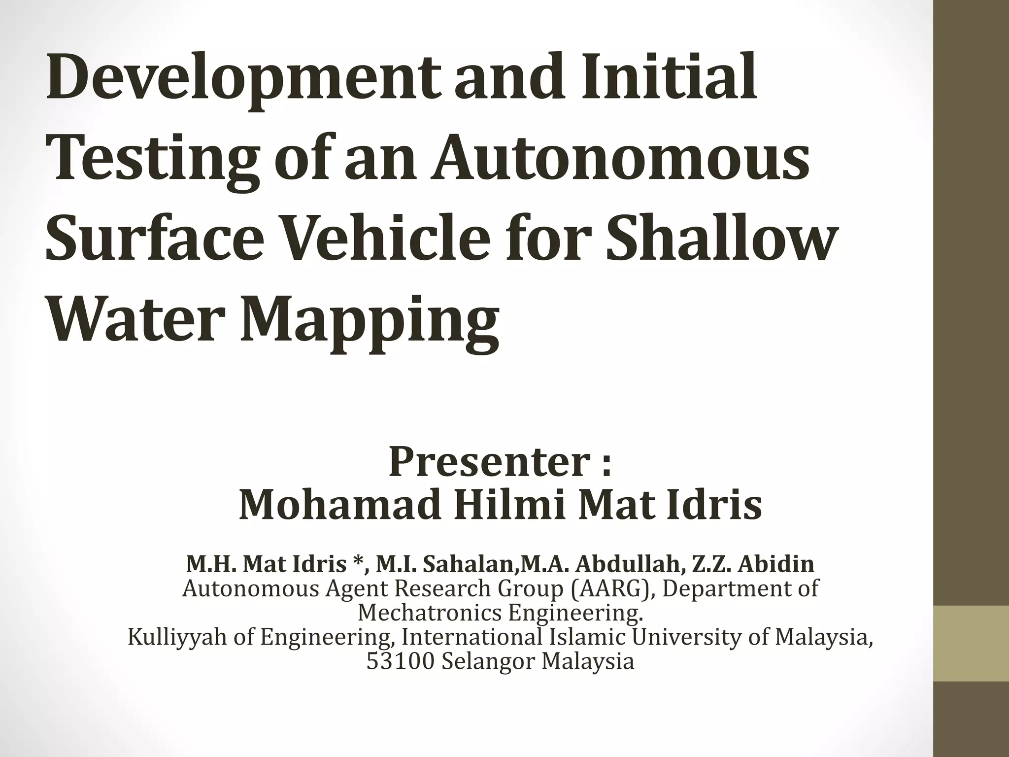 1) The document describes the development and initial testing of an autonomous surface vehicle (ASV) for shallow water mapping.