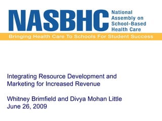 The document discusses integrating resource development and marketing for increased revenue. It outlines 5 key steps to successful development: having a compelling case for support, availability of volunteer leadership, assessing an organization's philanthropic potential, being internally prepared, and fostering a culture of philanthropy. The document also stresses the importance of strategic marketing to help communicate an organization's services, develop connections, and widen its target demographic. Various marketing tools and strategies are proposed for different audiences.
