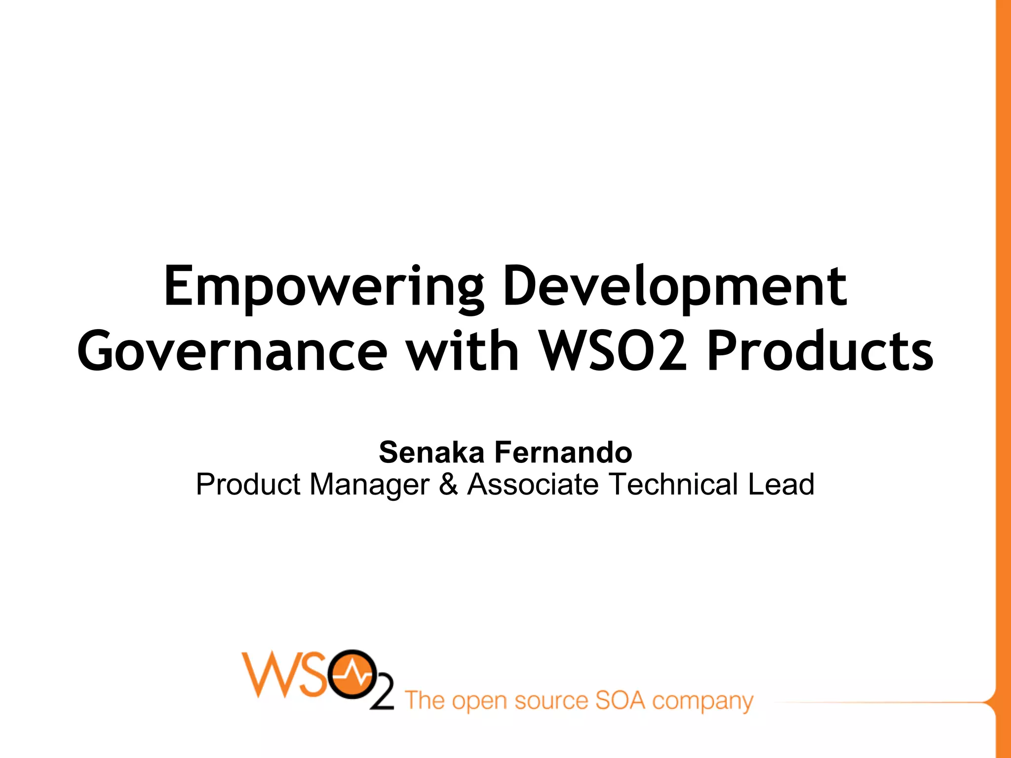 The document outlines the role of WSO2 products in empowering development governance, covering various aspects such as lifecycle management, tooling, and policy compliance. It details pre-development, development, and post-development processes including automation and quality assurance. Additionally, it highlights the importance of maintaining compliance with design-time and runtime policies within the governance framework.