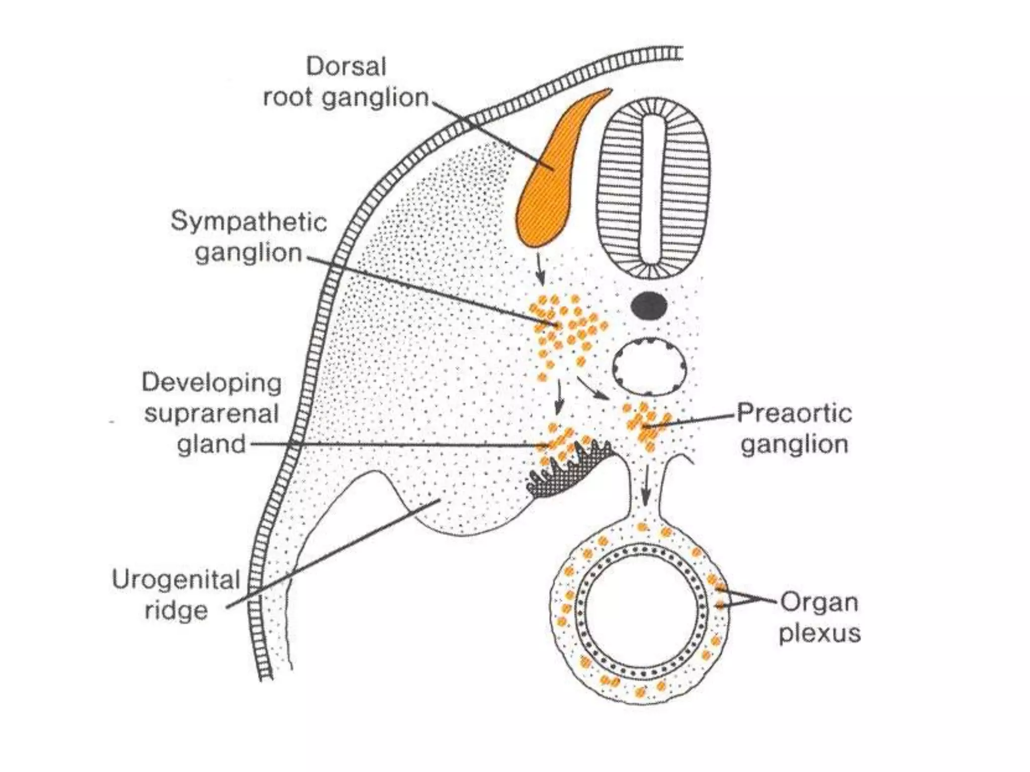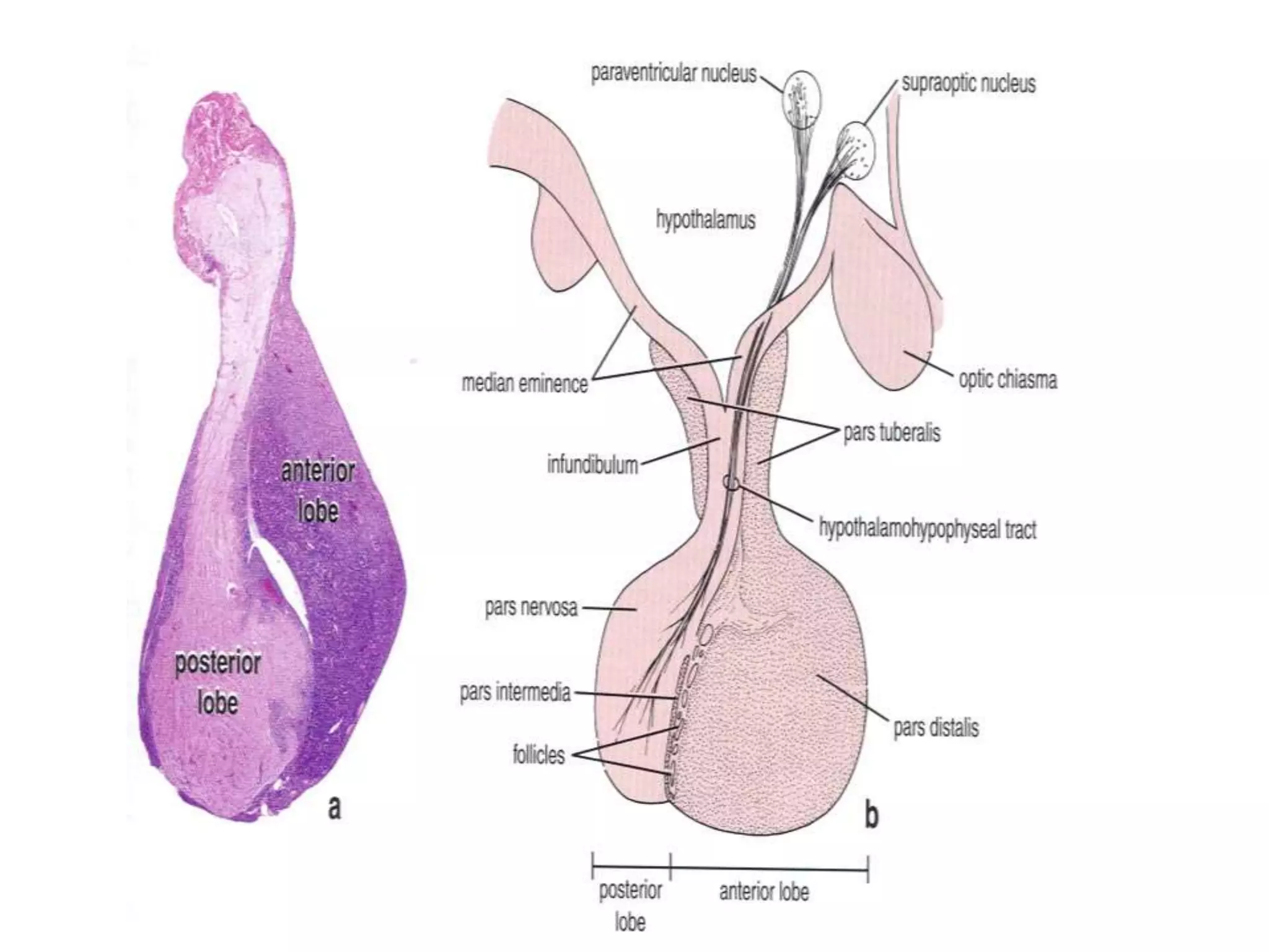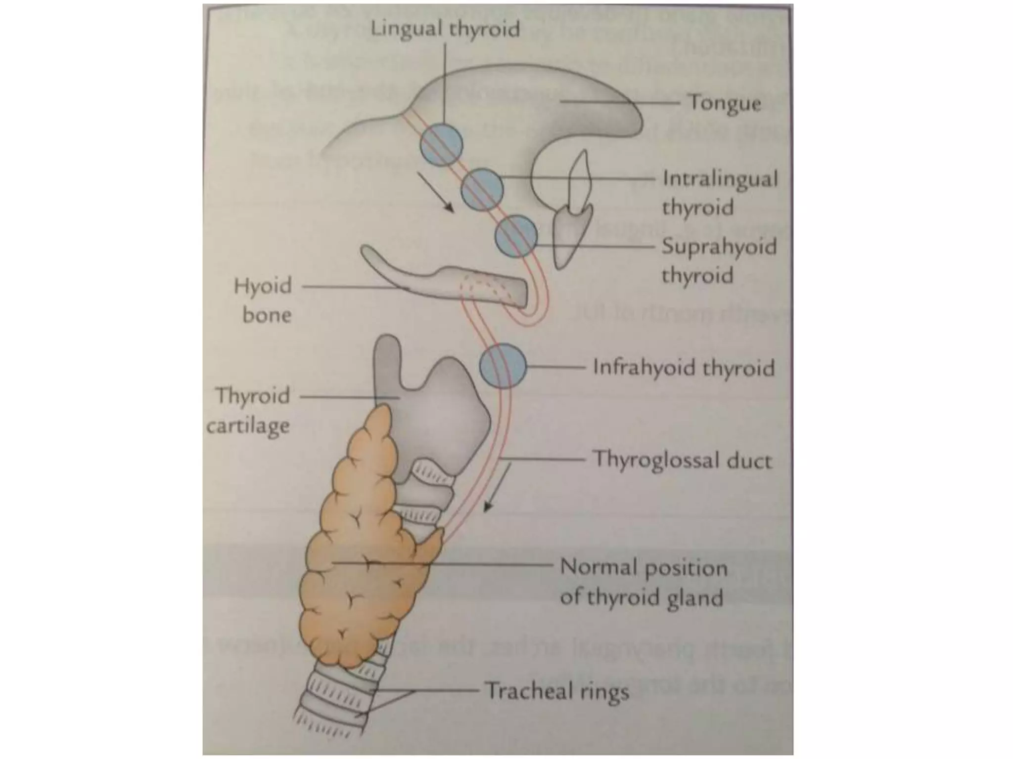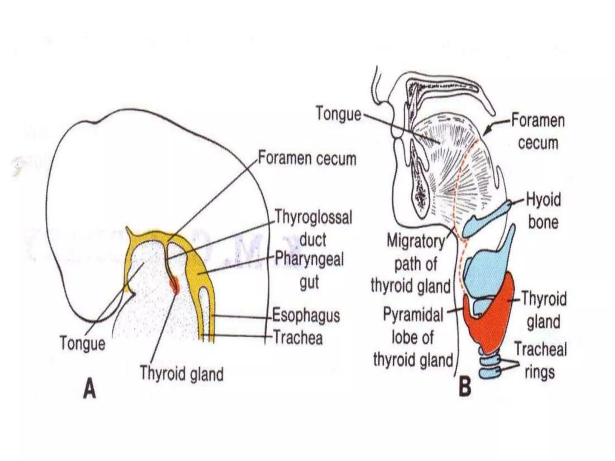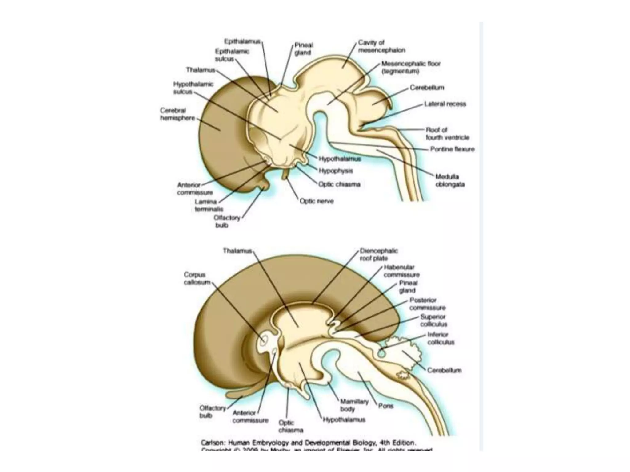 The pituitary gland develops from an evagination of ectoderm called Rathke's pouch and a neuroectodermal diverticulum from the hypothalamus. The anterior pituitary develops from Rathke's pouch while the posterior pituitary develops from the diverticulum. Possible anomalies include ectopic posterior pituitary, pharyngeal hypophysis, agenesis of the pituitary gland, duplication, and craniopharyngioma tumor. The pineal gland develops from a diverticulum of the diencephalon. The adrenal glands develop from coelomic epithelium for the cortex and neural crest cells for the medulla. The thyroid gland is the first endocrine gland to develop