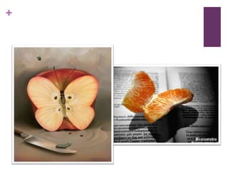 The document discusses developing ideas and concepts through combining different objects. It introduces a Polish surrealist painter as an influence and provides examples of combining two items, such as a tuba and elephant, to form a new creation like a "Tubaphant". The activities encourage combining two given items or choosing your own items to combine and drawing the new object that results from the combination.