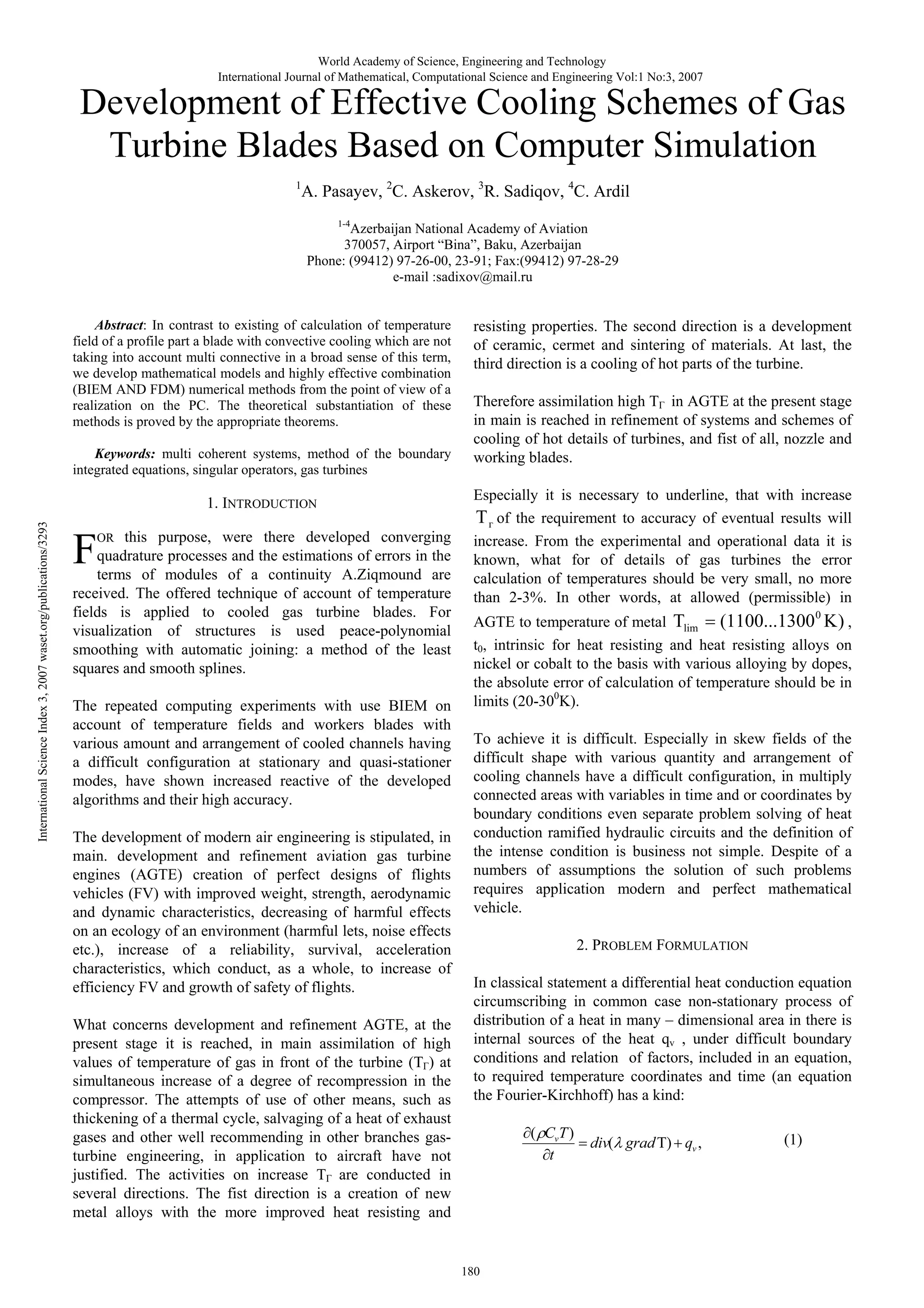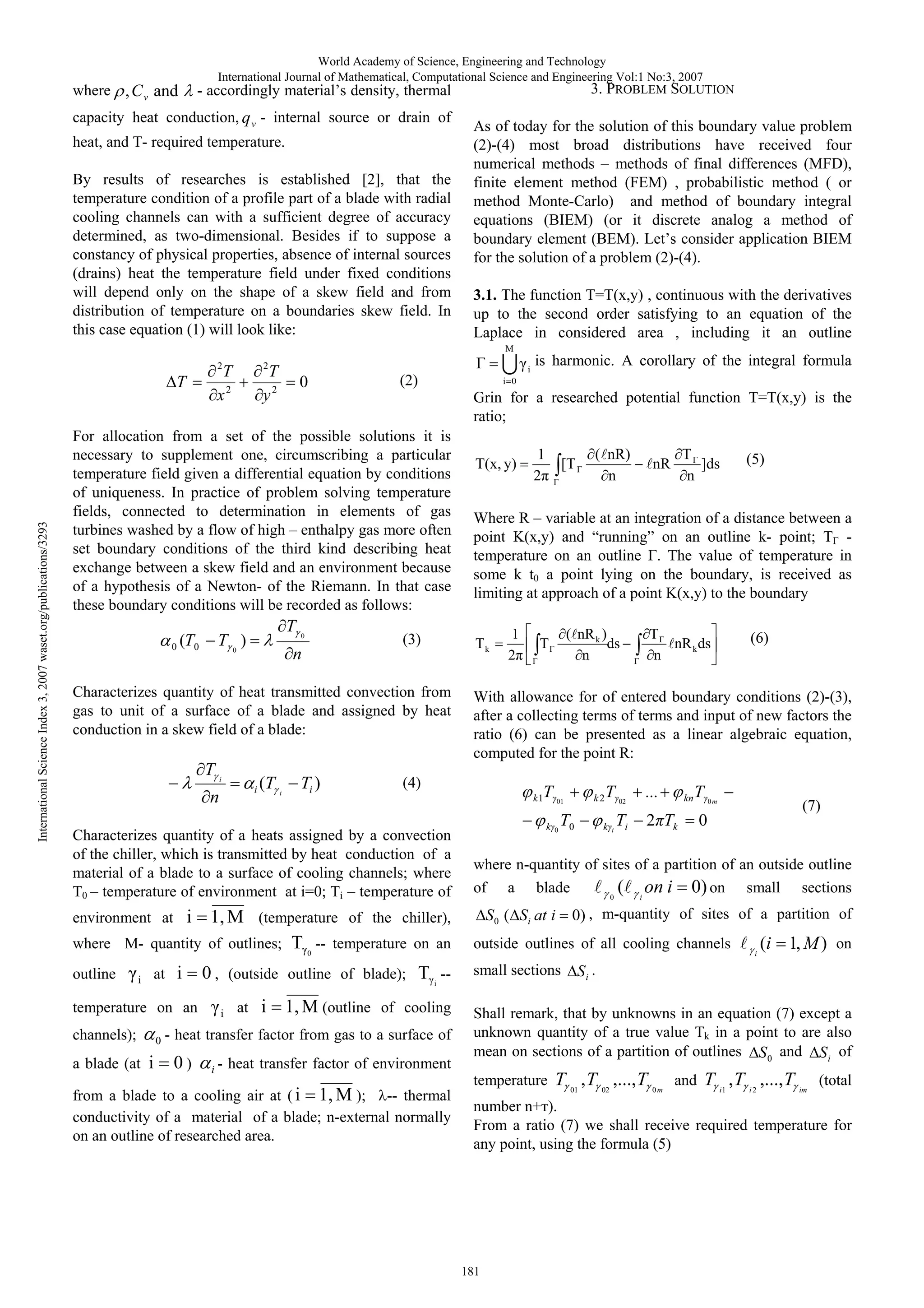 1) The development of mathematical models and numerical methods (BIEM and FDM) to accurately calculate the temperature fields of turbine blades with complex cooling channel configurations, taking into account various heat transfer factors.