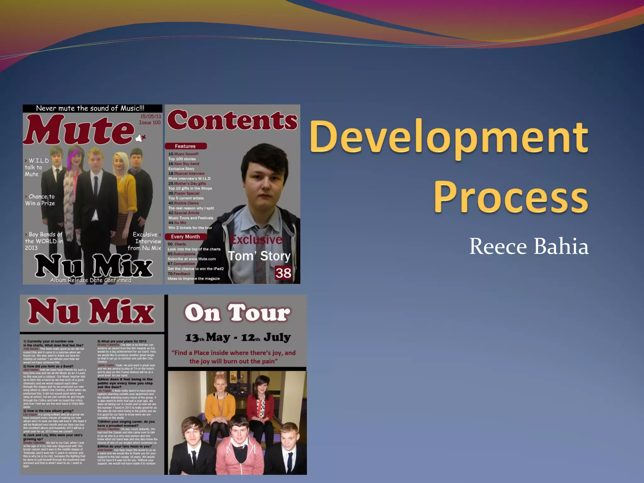 - Articles, text, images and other elements were added and formatted on various pages like the cover, contents page and article pages.