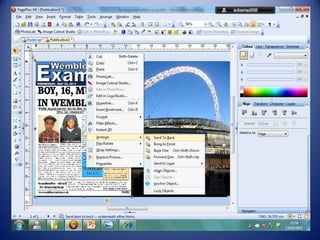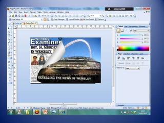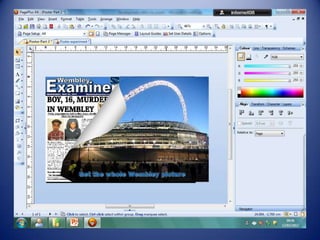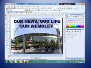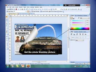 This document discusses developing a poster about Wembley. It lists several potential headlines for the poster, including "Get the whole Wembley picture", "See the real Wembley behind the image", and "Revealing Wembley news".