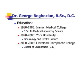 1. Dr. Boghozian's education and teaching experience in various medical fields.