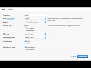 3. The presenter discusses using OpsWorks with Ruby on Rails applications, including customizing Chef recipes, deploying code, and integrating other AWS services for monitoring, security, and scaling. While documentation can be confusing, OpsWorks provides an easy way for developers to manage operations.