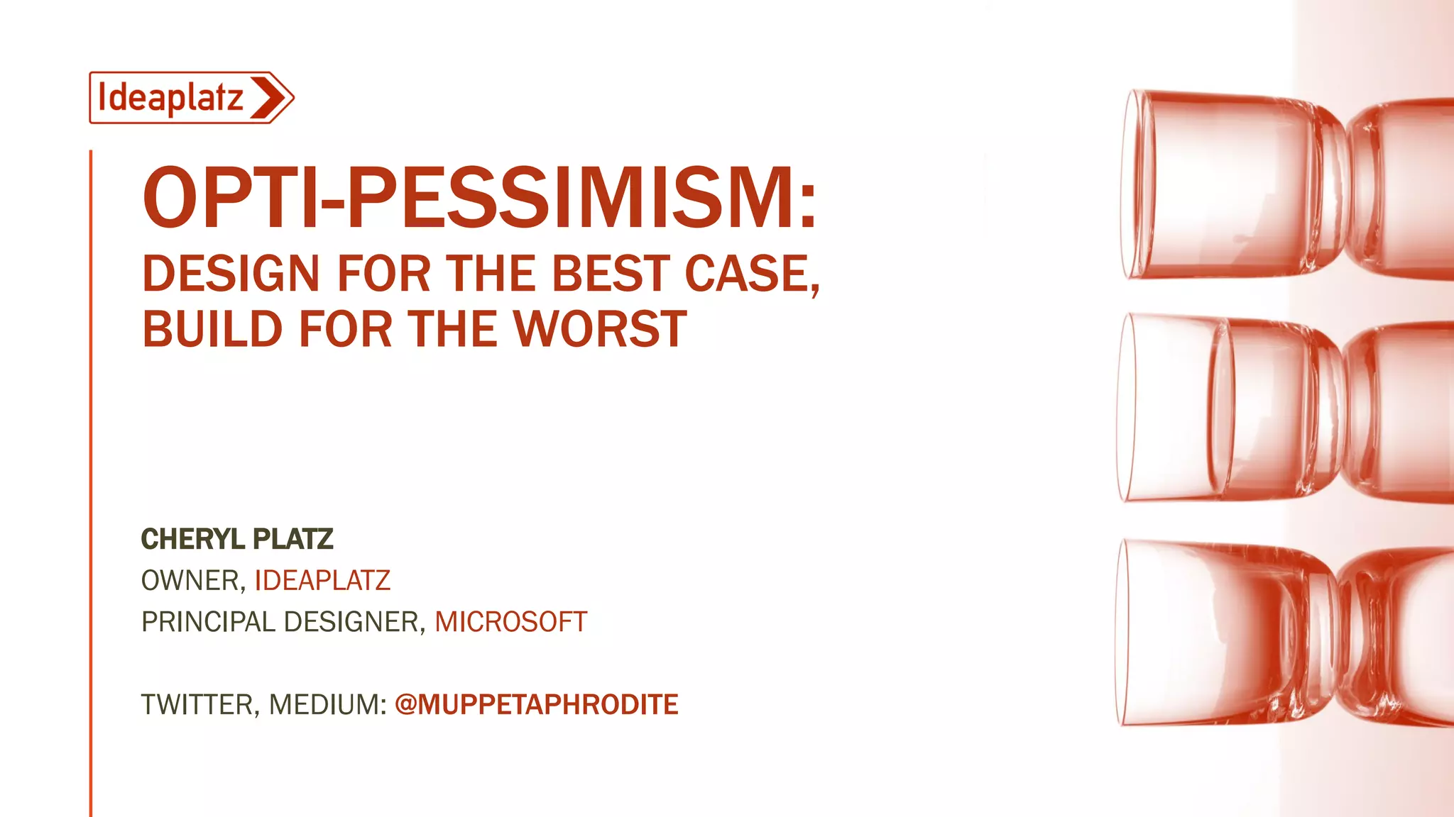 The document discusses an approach called "opti-pessimism" for product design. It involves designing for the best case scenario but building for the worst case. The speaker recommends leading with hard questions about potential negative impacts, exploring the human context through qualitative research, and designing experiences that can scale across devices and interruptions while preparing for errors. Opti-pessimism helps address the complex challenges of modern product design by considering both optimistic and pessimistic assumptions.