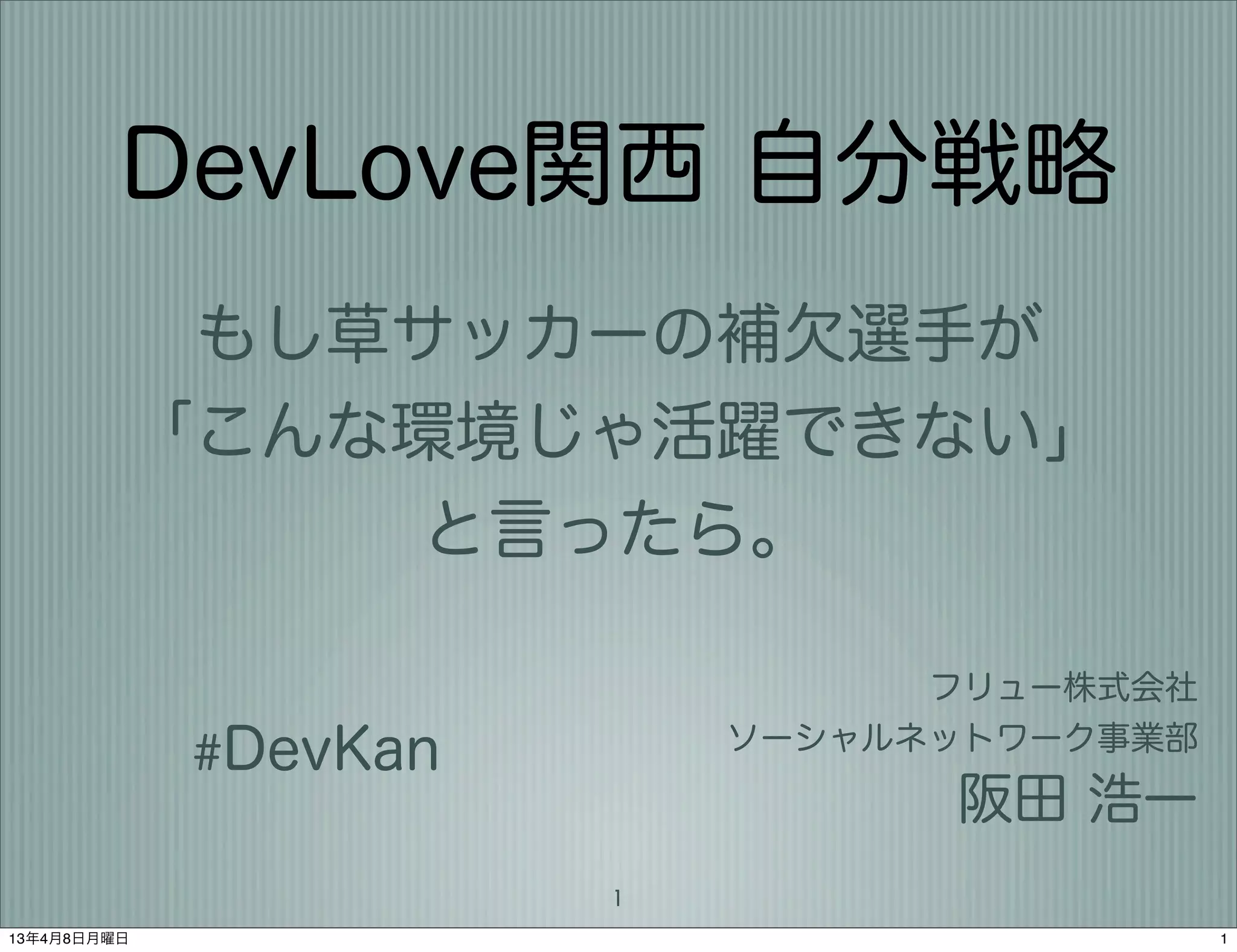 2013年4月4日のDevLove関西「関西人の自分戦略」で発表したスライドです。