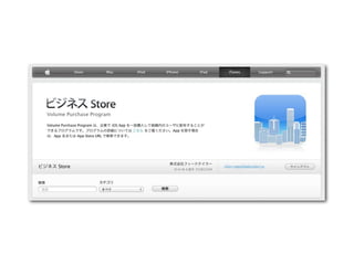 AppStoreの配信の仕組みを 顧客の為の専用アプリを配布する手段として使う 審査は受ける必要がある 配布のインフラ不要 課金も可能