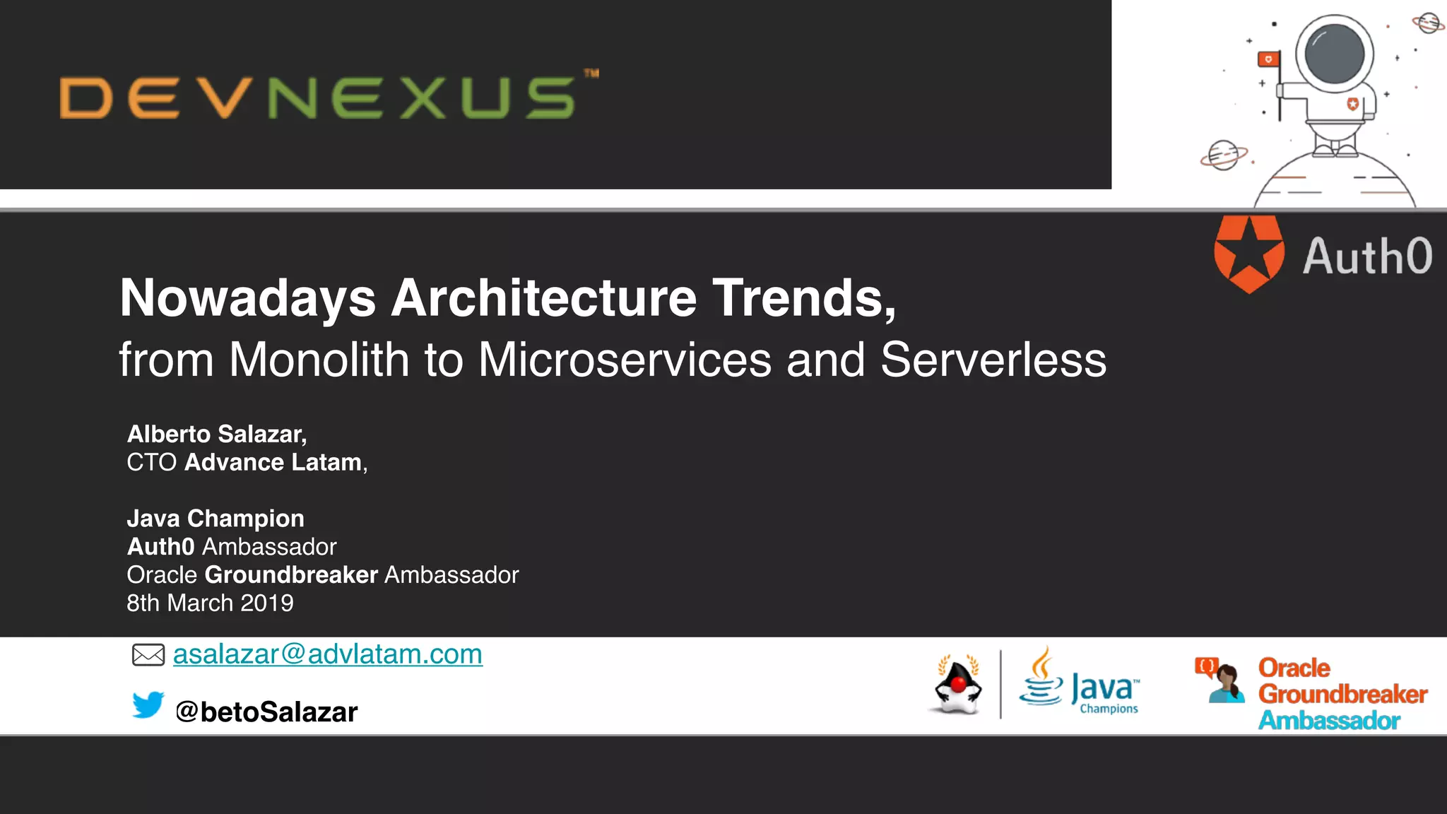 This document discusses architecture trends from monolith to microservices and serverless. It begins with an overview of monolith applications and their limitations over time. It then covers challenges in transitioning from a monolith to microservices and some strategies for doing so incrementally, such as splitting the frontend from the backend. The document also discusses serverless architectures and third party services. It concludes with tips on logging, monitoring, and considerations around costs, complexity and vendor lock-in for different architectural approaches.
