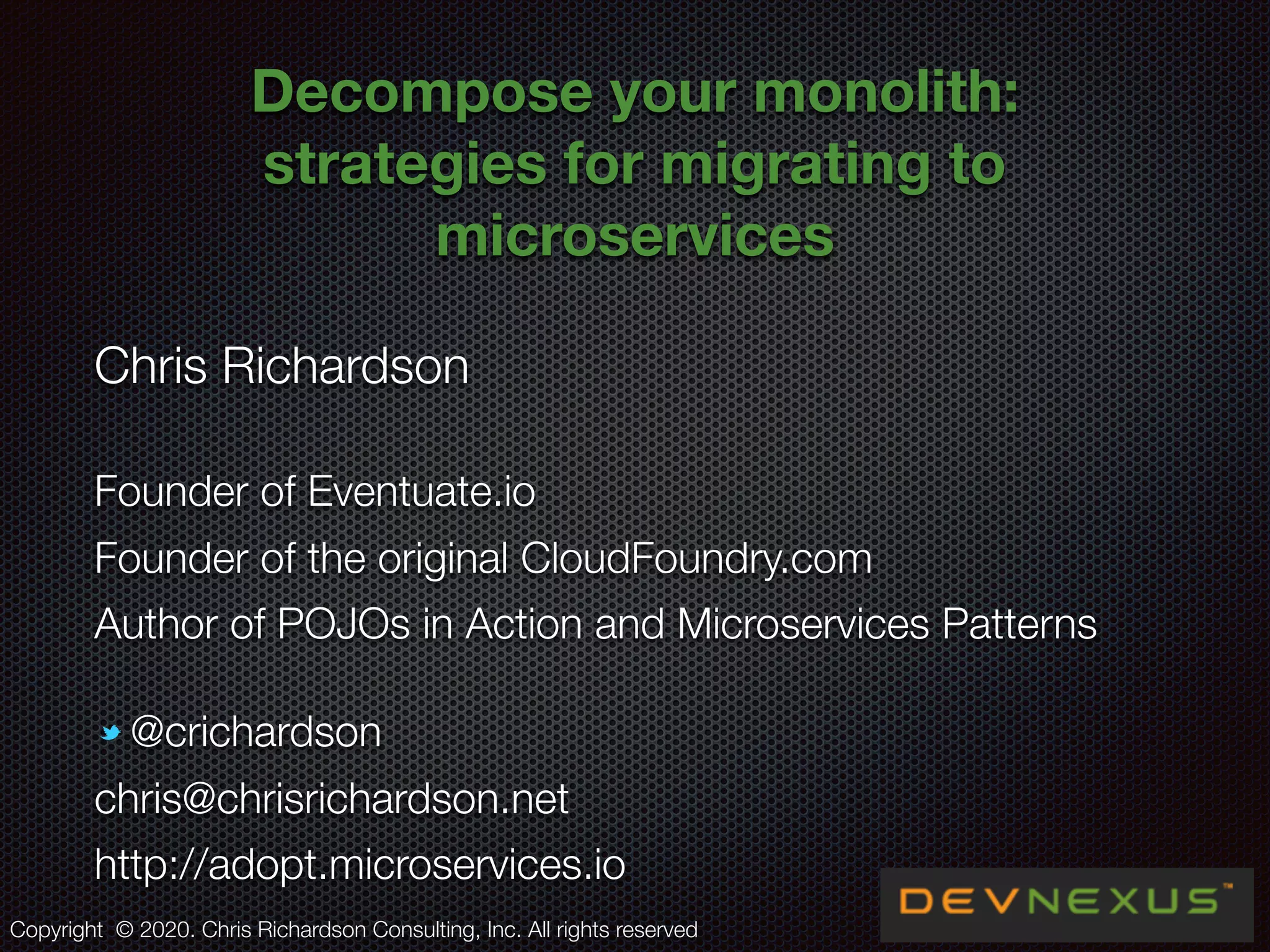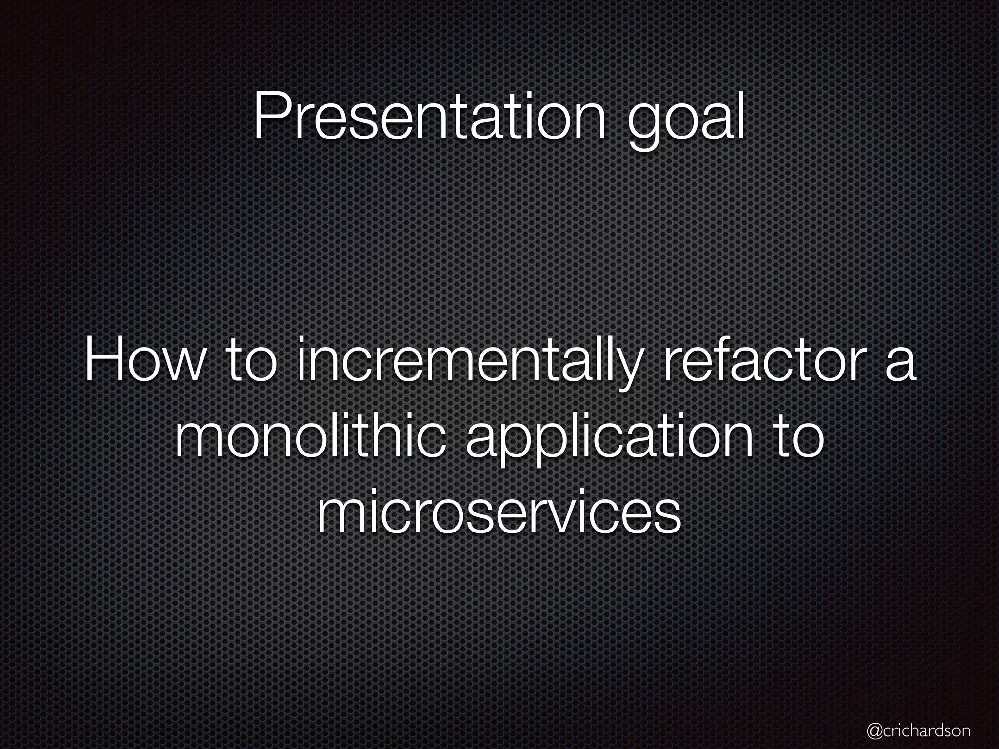This document discusses strategies for migrating a monolithic application to microservices. It begins with an overview of decomposing a monolith and implementing new features as microservices. It then provides an example of extracting the delivery module from a monolithic food delivery application into its own delivery microservice. The example outlines the steps of splitting the code, extracting the relevant database tables, defining and deploying the new delivery service, integrating it with the monolith, and removing the old code. Finally, it discusses implementing a delayed delivery service as another example.