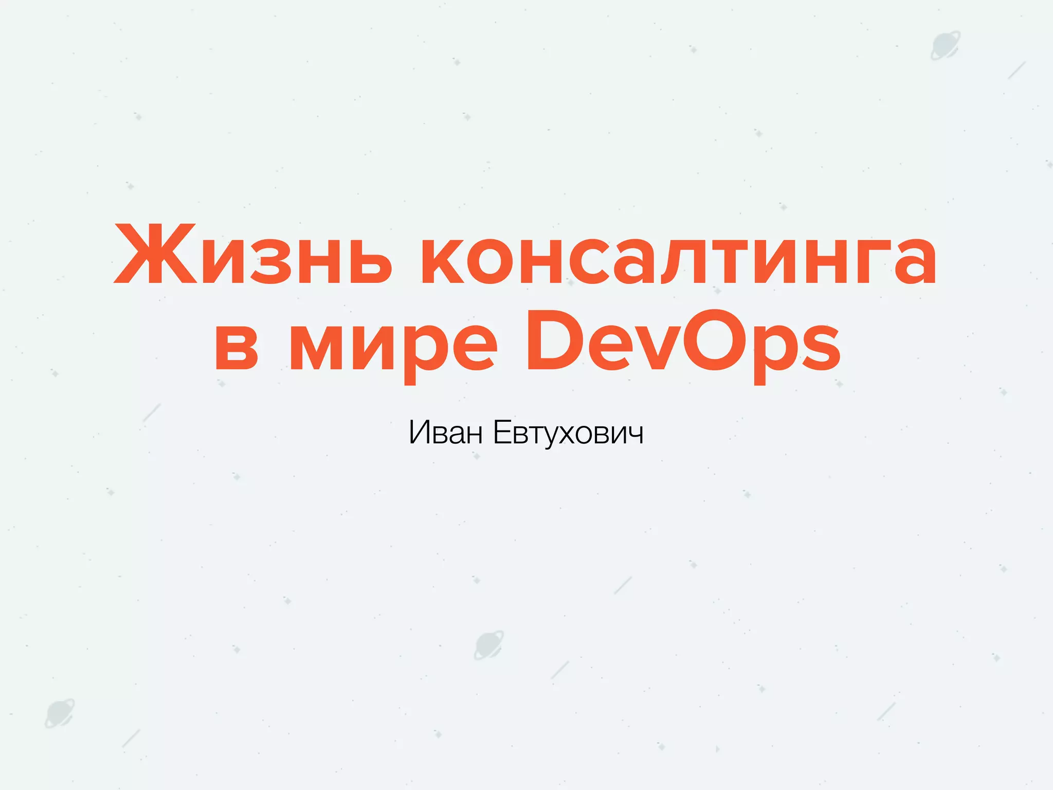 Документ описывает опыт и развитие консалтинговой компании в области DevOps, начиная с регистрации в 2012 году и заканчивая современными тенденциями в технологии. Рассматриваются успешные и неудачные клиенты, а также проблемы, с которыми сталкивался бизнес, в том числе недостаток понимания со стороны целевой аудитории. В документе также упомянуты важные изменения и тренды в DevOps, такие как управление конфигурацией и использование микросервисов.