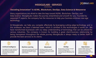Data Science. MoogleLabs makes the journey streamlined and smooth for you. Founded by