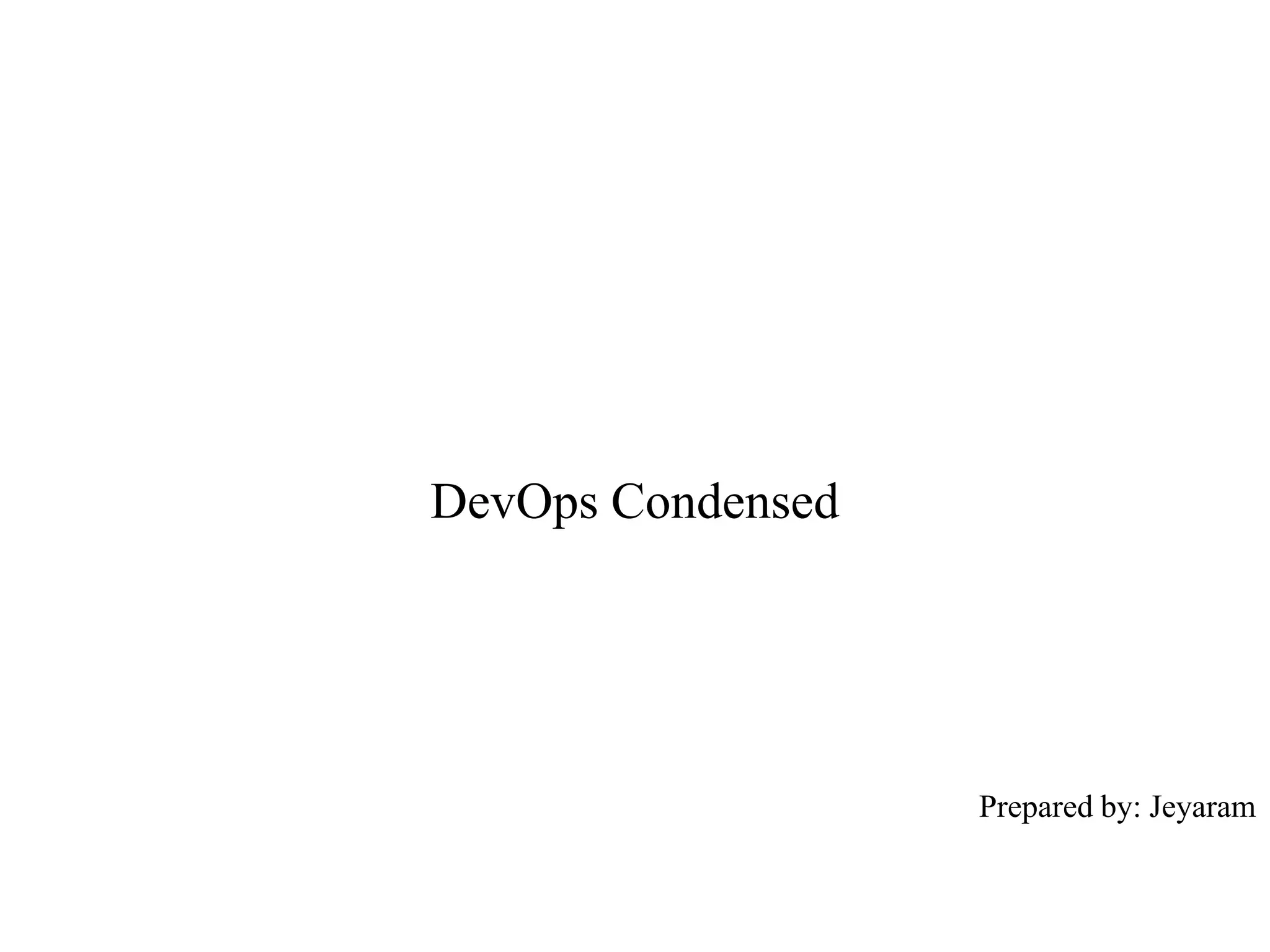 This document provides an overview of key concepts in DevOps including culture, automation, DevOps principles, continuous integration (CI), continuous delivery (CD), monitoring, incident management, and references. The main points are: DevOps focuses on empathy, trust, respect, and communication across teams; automation enables collaboration and innovation; DevOps involves all teams from development to operations; CI and CD aim to integrate and deploy working software frequently; monitoring ensures uptime and performance while incident management restores normal operations quickly.