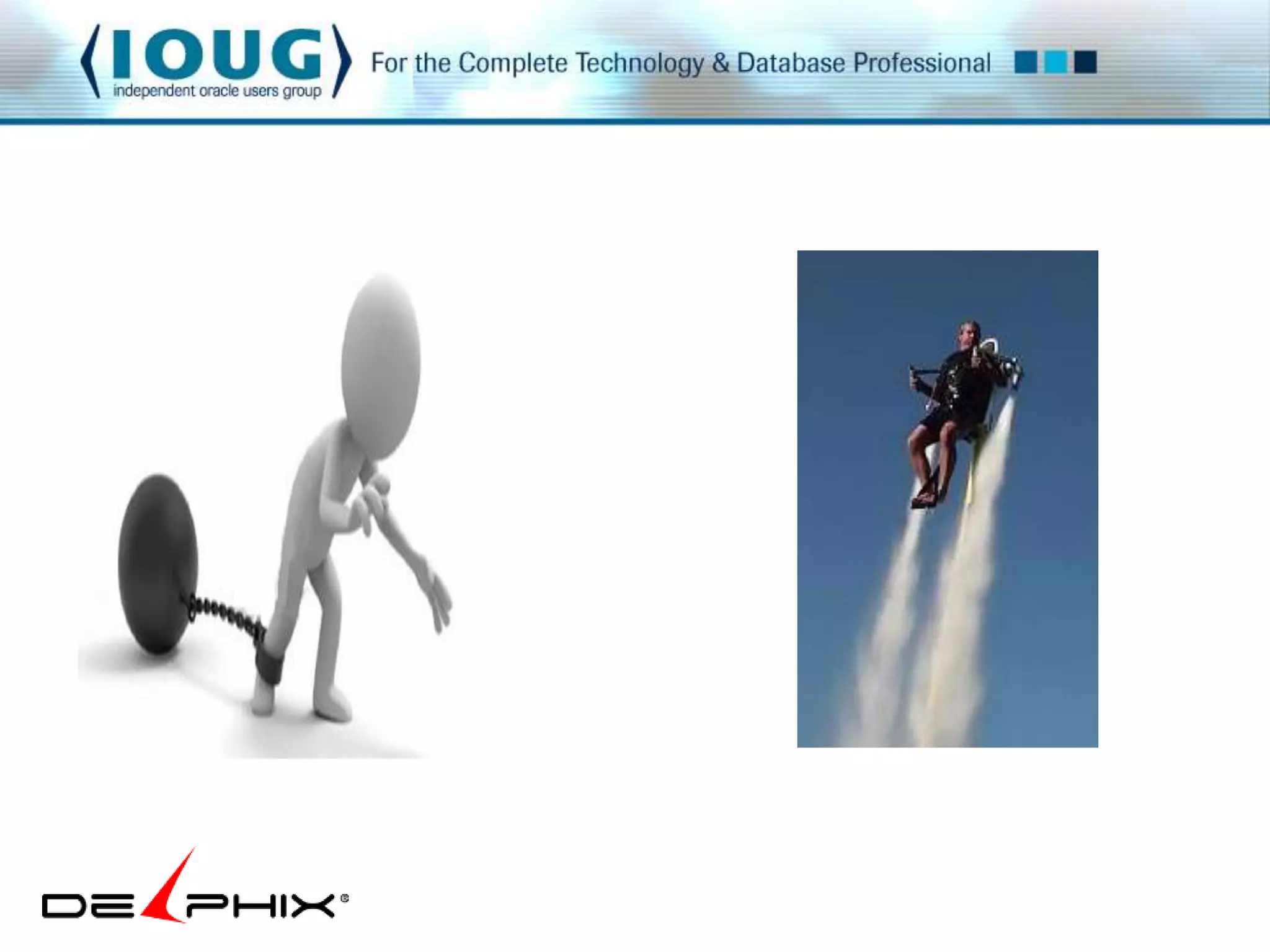 This document discusses using a virtual data platform to address data constraints in IT. It begins by explaining how data flooding infrastructure strains IT resources and costs companies huge sums. Most companies are unaware of these data costs. The solution presented is a virtual data appliance that can clone database environments from snapshots to provision dev/test environments quickly without consuming large amounts of physical storage. Key benefits outlined include unlimited, full-sized, self-service database environments for development and QA teams as well as fast rollback capabilities and A/B testing for QA.