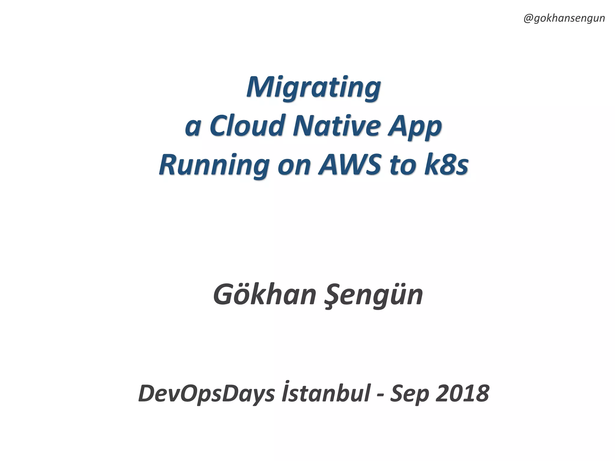 This document summarizes a talk about migrating a cloud native application running on AWS to Kubernetes. The application consisted of 15 microservices written in various languages and heavily using AWS services across 3 regions. The goals of the migration were to make the application cloud agnostic, improve developer experience, prevent single points of failure, and enable auto-scaling. Key aspects of the migration included containerizing services, using Kubernetes for orchestration, Terraform for infrastructure provisioning, and implementing immutable infrastructure with configuration and secrets management. A CI/CD pipeline was also established using Jenkins, Spinnaker, and other tools.