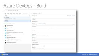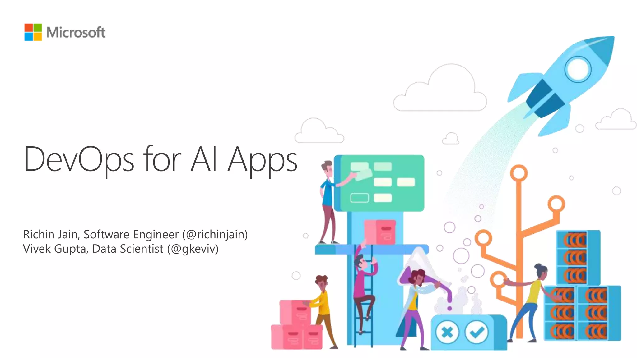The document discusses the integration of DevOps practices into AI application development, emphasizing continuous integration and deployment as key components. It highlights challenges in machine learning processes within enterprise environments, such as model versioning and reproducibility, and proposes a structured DevOps approach to streamline AI workflows. Utilizing Azure ML and DevOps tools is suggested to improve the agility and quality of data science teams in managing AI application lifecycles.