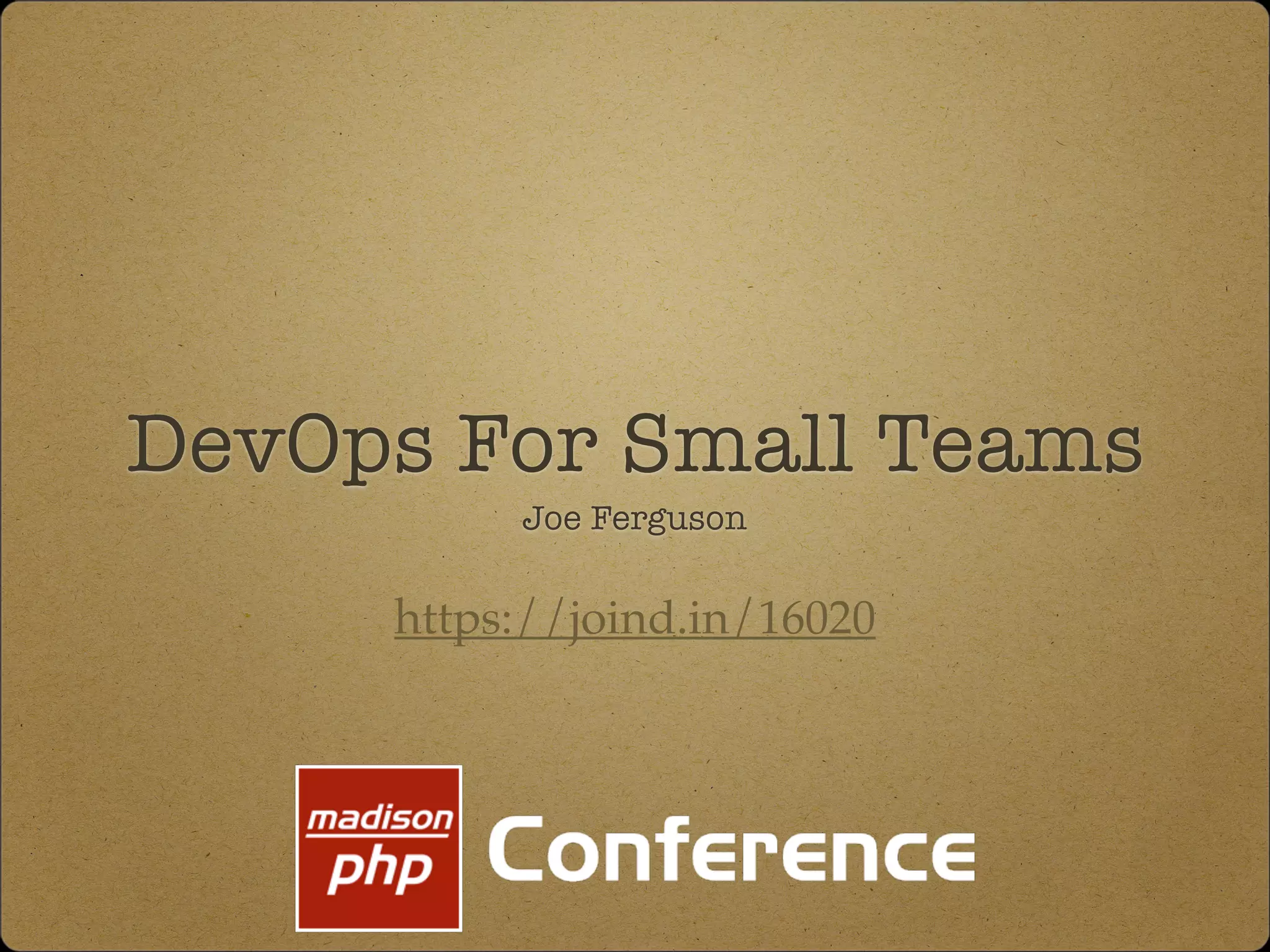 Joe Ferguson discusses his experiences and insights on DevOps specifically for small teams, emphasizing the importance of version control, testing, and continuous integration. He advocates for using tools like Vagrant to standardize development environments and stresses abandoning outdated practices like FTP access. The document outlines practical tips for scaling teams and optimizing workflows, while highlighting the significance of automation and feedback in development processes.