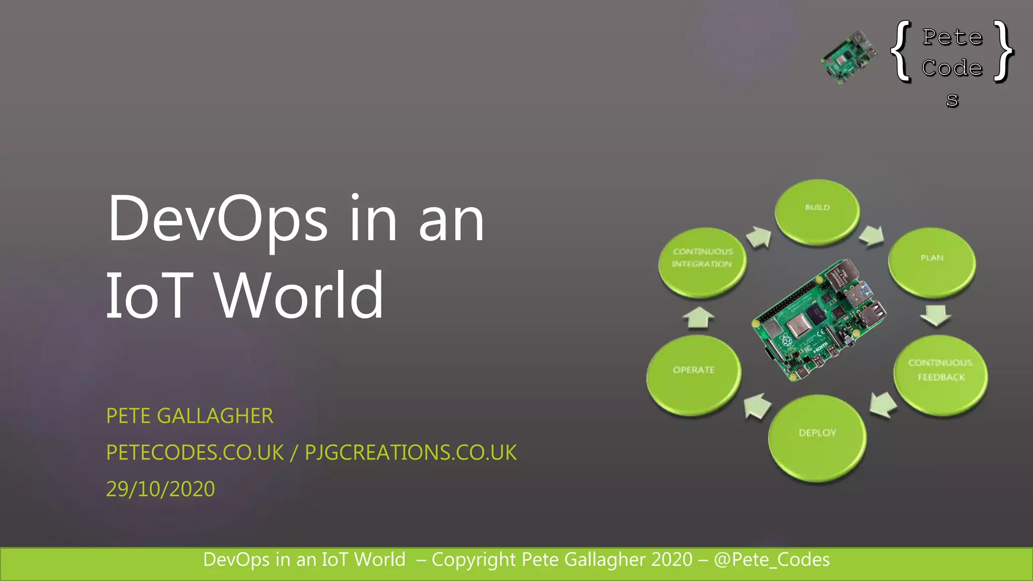 The document discusses the integration of DevOps in the Internet of Things (IoT), exploring the definitions of IoT and DevOps, the development of a simple IoT application, and various tools including Azure DevOps and Jenkins. It emphasizes the importance of collaboration and automation in the software development process for IoT applications. The presentation includes demonstrations and resources related to IoT devices, Azure IoT Edge, and the Microsoft Azure DevOps platform.