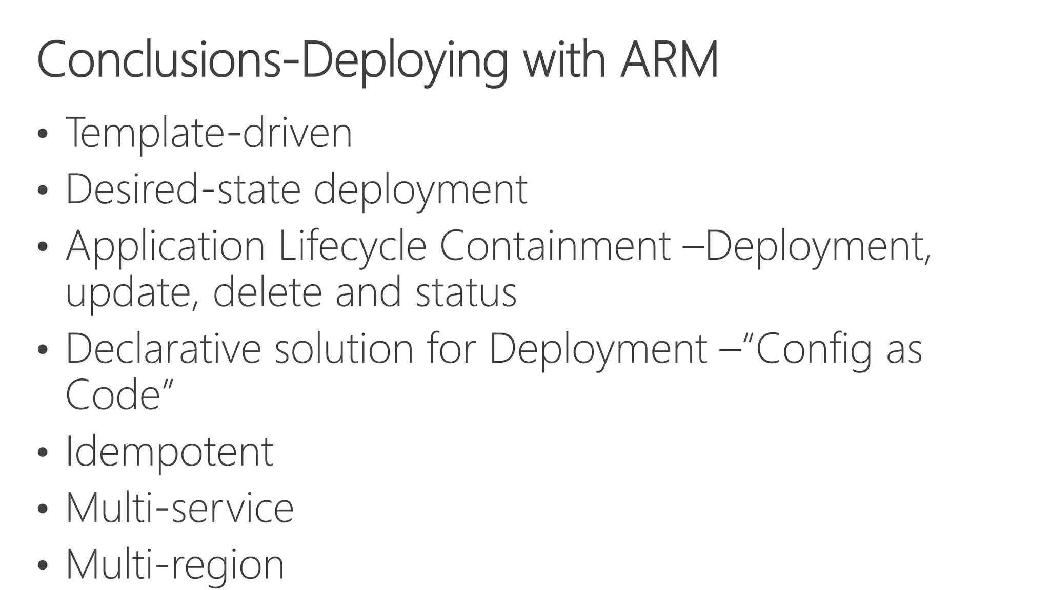 This document provides an agenda for discussing Azure Resource Manager. It begins with an overview of current challenges and the basics of Azure resource groups and Azure Resource Manager. It then discusses designing ARM templates, deploying ARM templates, and next steps and resources. The document explains that ARM templates allow for the declarative deployment of resources as code with specified dependencies. It provides examples of ARM template structure and discusses best practices like versioning templates, using input parameters, tagging resources, including outputs, decomposing larger deployments, and using nested and looped templates.