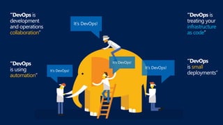 This document discusses DevOps practices in the cloud, including continuous deployment using Visual Studio Online and Azure Websites for deploying code changes automatically. It also covers monitoring web applications with Application Insights for performance monitoring and load testing web apps. Different cloud platforms like IaaS, PaaS websites, and PaaS cloud services are mentioned.