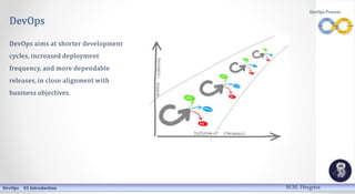 DevOps is a software engineering culture and practice that aims to unify software development (Dev) and software operation (Ops) teams. The main goals of DevOps are to achieve shorter development cycles, increased deployment frequency, and more dependable releases that are closely aligned with business objectives. DevOps advocates for the automation and monitoring of all steps in the software development process, from integration and testing through release, deployment, and infrastructure management.