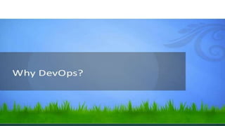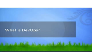 The document introduces DevOps, which stresses communication between software developers and IT to enable rapid product evolution and reduce costs. DevOps targets faster development and deployment cycles through continuous integration of development, testing, features, and maintenance. It addresses challenges in release management and deployment coordination through better collaboration, automation, and monitoring across development, testing, and production environments. The document also discusses how Agile and DevOps are connected in addressing gaps between different teams, and provides guidance on when projects should and should not adopt DevOps.