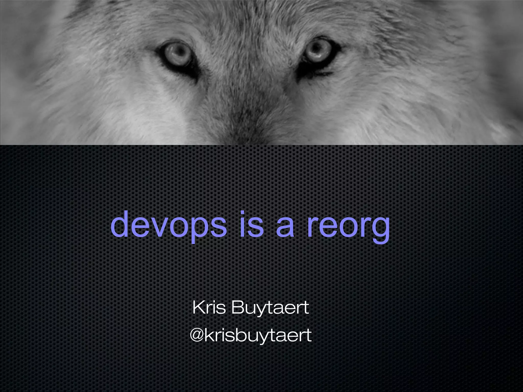 Devops is a reorganization of development and operations teams to promote collaboration. It breaks down barriers between teams by having developers and operations engineers work together in cross-functional teams throughout the development lifecycle. Traditional organizations separate development and operations into silos with opposing goals, while devops advocates for shared goals and responsibilities between teams through practices like automation, continuous integration, and measurement. Adopting a devops approach requires changing organizational culture and mindset rather than just implementing new tools or processes.