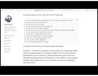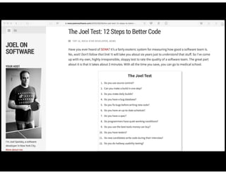 This document provides an overview of DevOps tools and practices categorized into different stages: plan, code, build, test, package, release, configure, and monitor. It emphasizes that tools are not as important as culture and practices. The document also discusses challenges faced in large-scale DevOps implementations like at Peru's Federal Tax Collection Office and opportunities to improve practices around source control, testing, continuous integration, packaging, and deployment. Overall, the document stresses the importance of building a collaborative culture over relying on specific tools.
