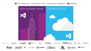 The document discusses DevOps practices and investments including using Java in hosted builds, Azure Active Directory, European datacenters, REST APIs, service hooks, and overcoming challenges with continuous delivery, continuous monitoring and learning, and applying an ALM and DevOps approach through ongoing innovation.