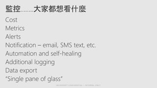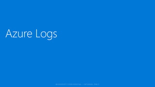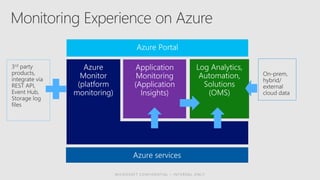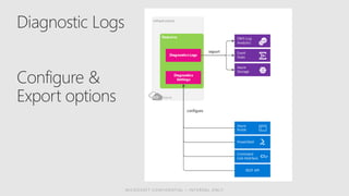 The document discusses Azure monitoring and diagnostics services including: