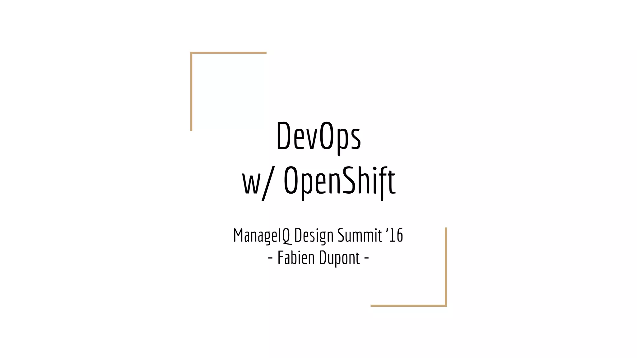 This document discusses DevOps workflows using OpenShift and ManageIQ. It describes using GitLab for source code management, CI/CD, and collaboration. OpenShift is used as a platform for deploying and managing containerized applications. ManageIQ orchestrates provisioning of the DevOps tools including FreeIPA for authentication, GitLab, and OpenShift. The ecosystem is integrated through a CI/CD pipeline that builds, tests, reviews, and deploys code changes from a Git repository to OpenShift.