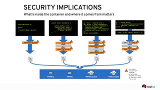 The presentation discusses the integration of security into DevOps practices, emphasizing the importance of DevSecOps and container security. It highlights challenges such as treating security as an afterthought, and outlines best practices for securing containerized applications, including continuous integration and deployment strategies. Additional focus is given to compliance, vulnerability scanning, and the need for collaboration across teams to ensure comprehensive security in software delivery.