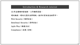 The document discusses the integration of security within DevOps and Agile methodologies, emphasizing the need for a DevSecOps culture that embeds security throughout the software development lifecycle (SDLC). It outlines various practices such as secure coding, compliance with regulations like GDPR, and the importance of involving security stakeholders in the development process. The author highlights challenges in maintaining security during Agile practices and the necessity of automated security testing within continuous integration and delivery pipelines.