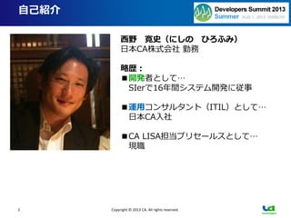 Developer Summit Summer 2013 C1 Session CA Technologies -Hirofumi Nishino-