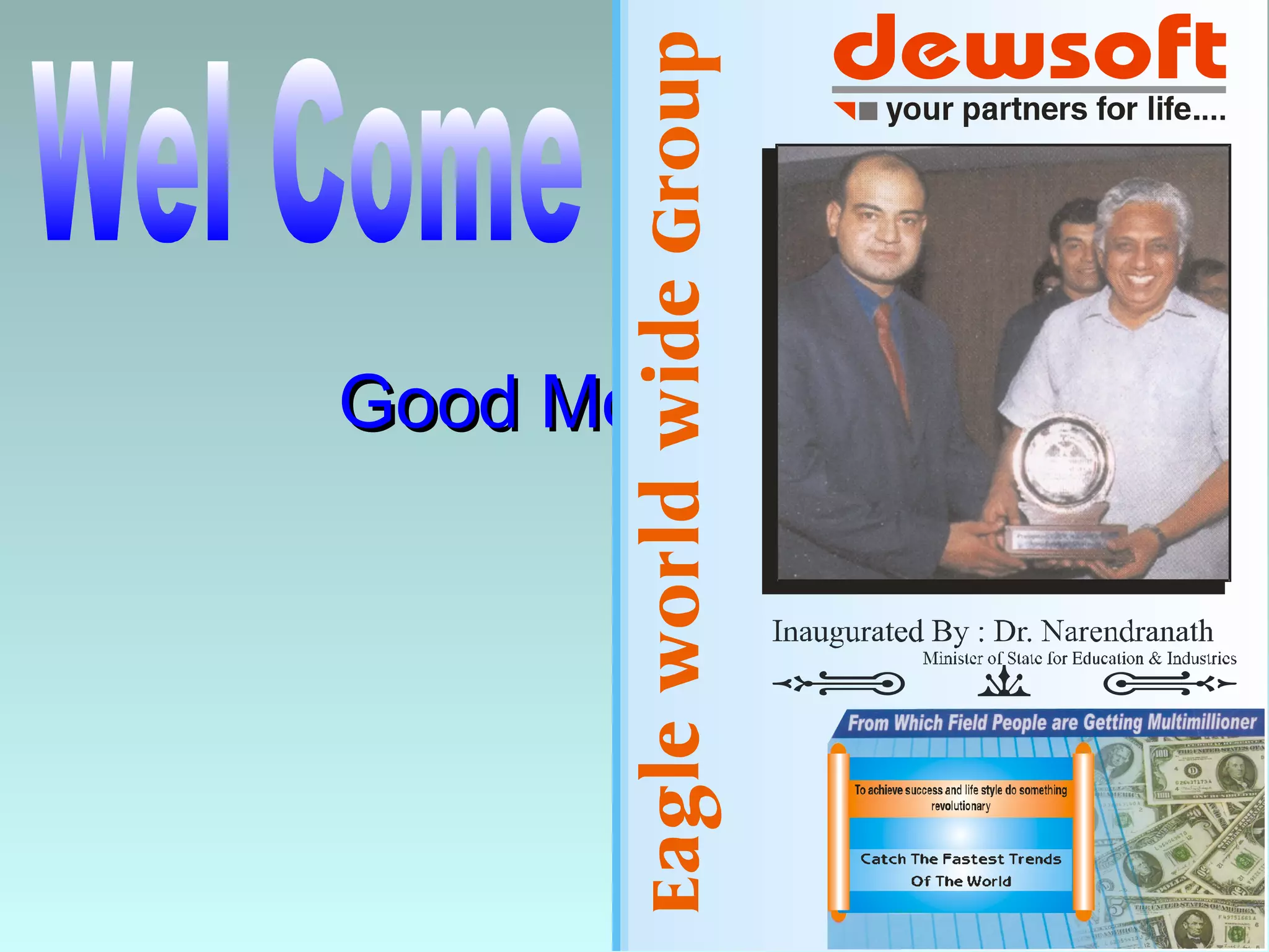 The document discusses a comprehensive educational program launched by Dewsoft that seeks to provide affordable IT and online education to various demographics in India, particularly targeting those with limited access to technology and education. It outlines a range of courses offered both online and offline, including computer education, management studies, entrance exam preparations, and language training. Additionally, it presents financial opportunities through its incentive plan for enrolling new students and outlines the company's goal to expand its educational centers significantly.