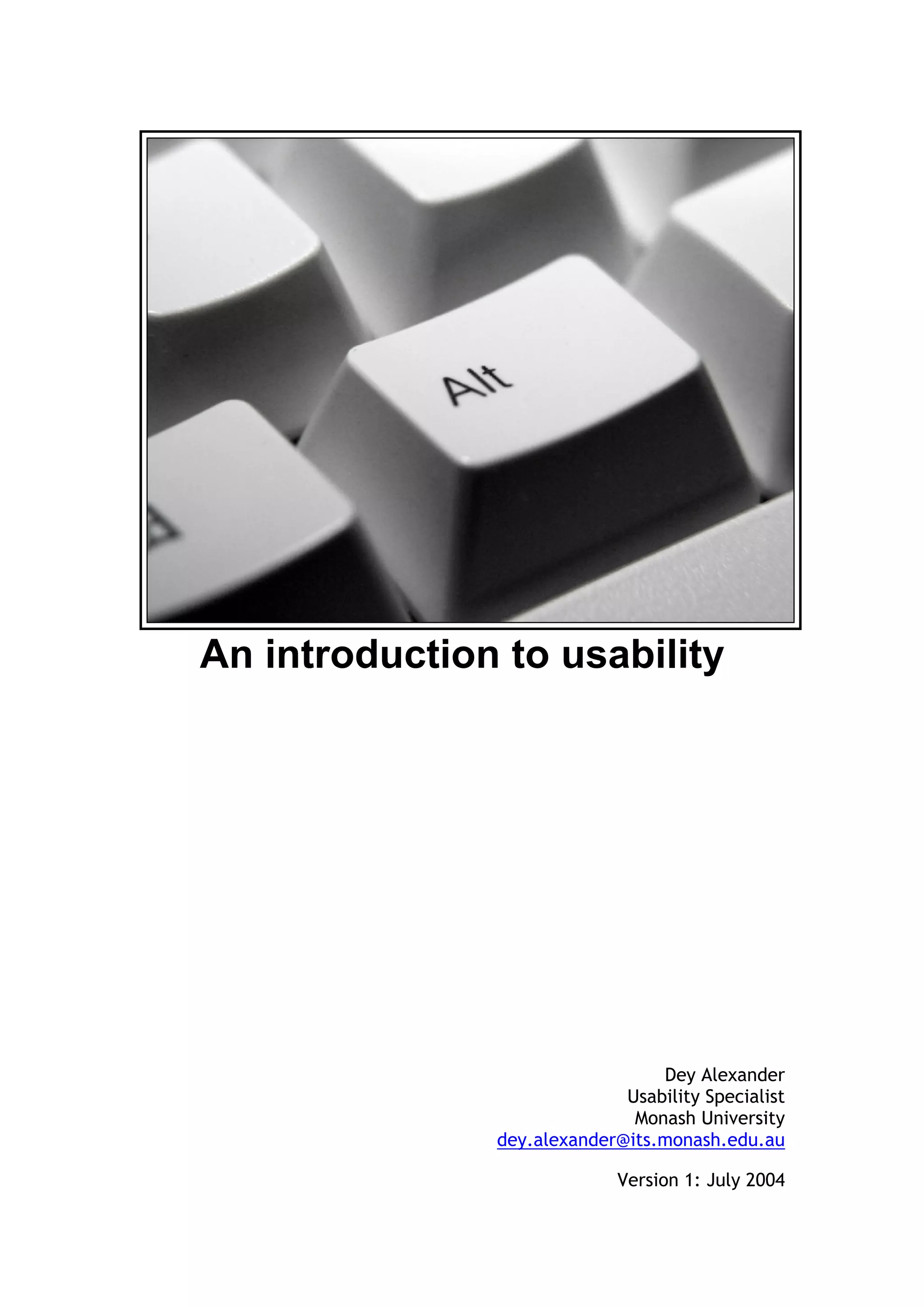 This document provides an introduction to usability, including: