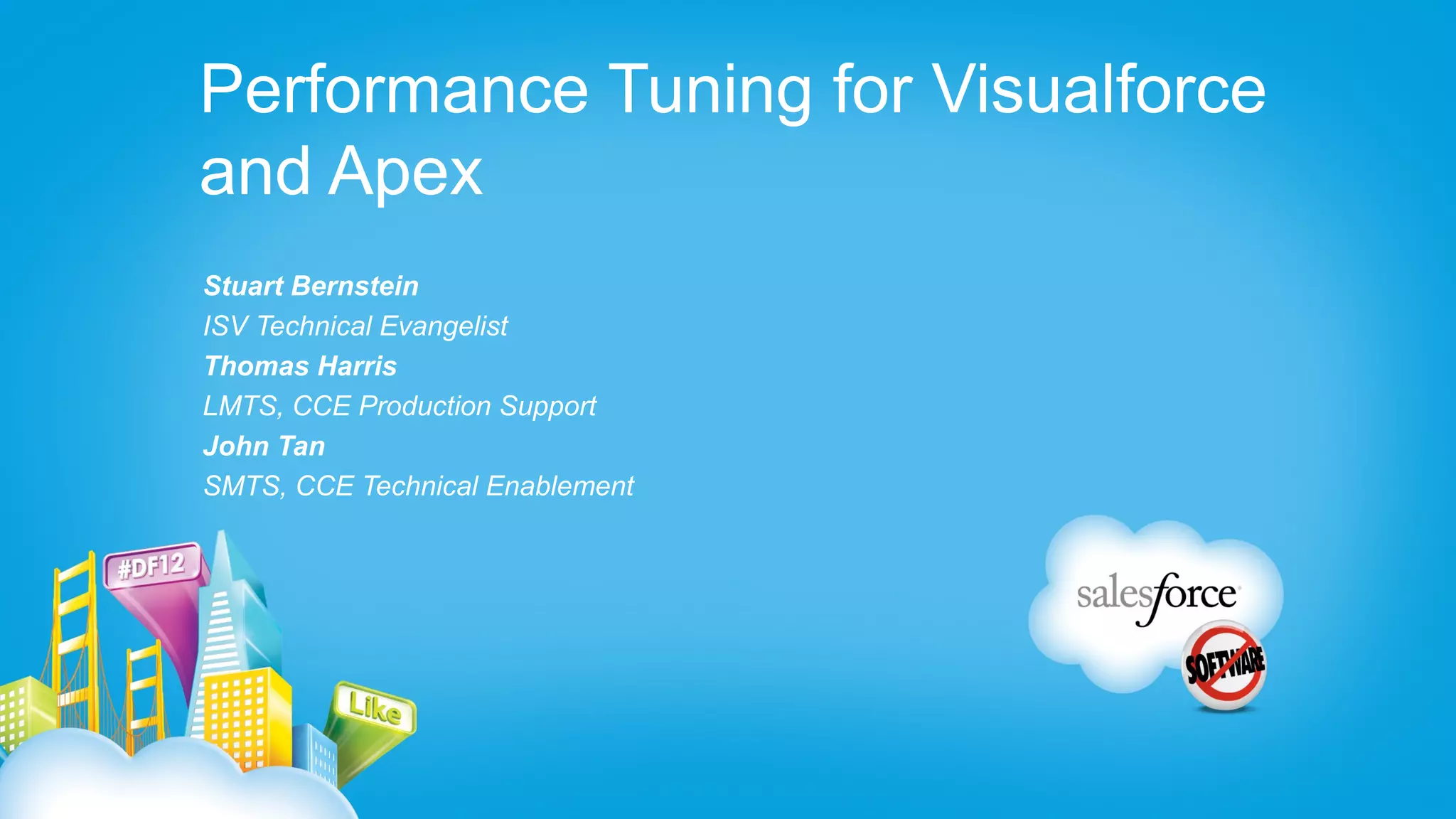 This presentation discusses performance tuning for Visualforce and Apex. It covers best practices for SOQL, SOSL, batch Apex, record locking, and debugging tools. The presentation emphasizes following SOQL best practices, tuning Apex code, and optimizing Visualforce pages to improve performance. It also provides tips for using indexes, filtering data, avoiding cross-object queries, and handling record locking and sharing calculations.
