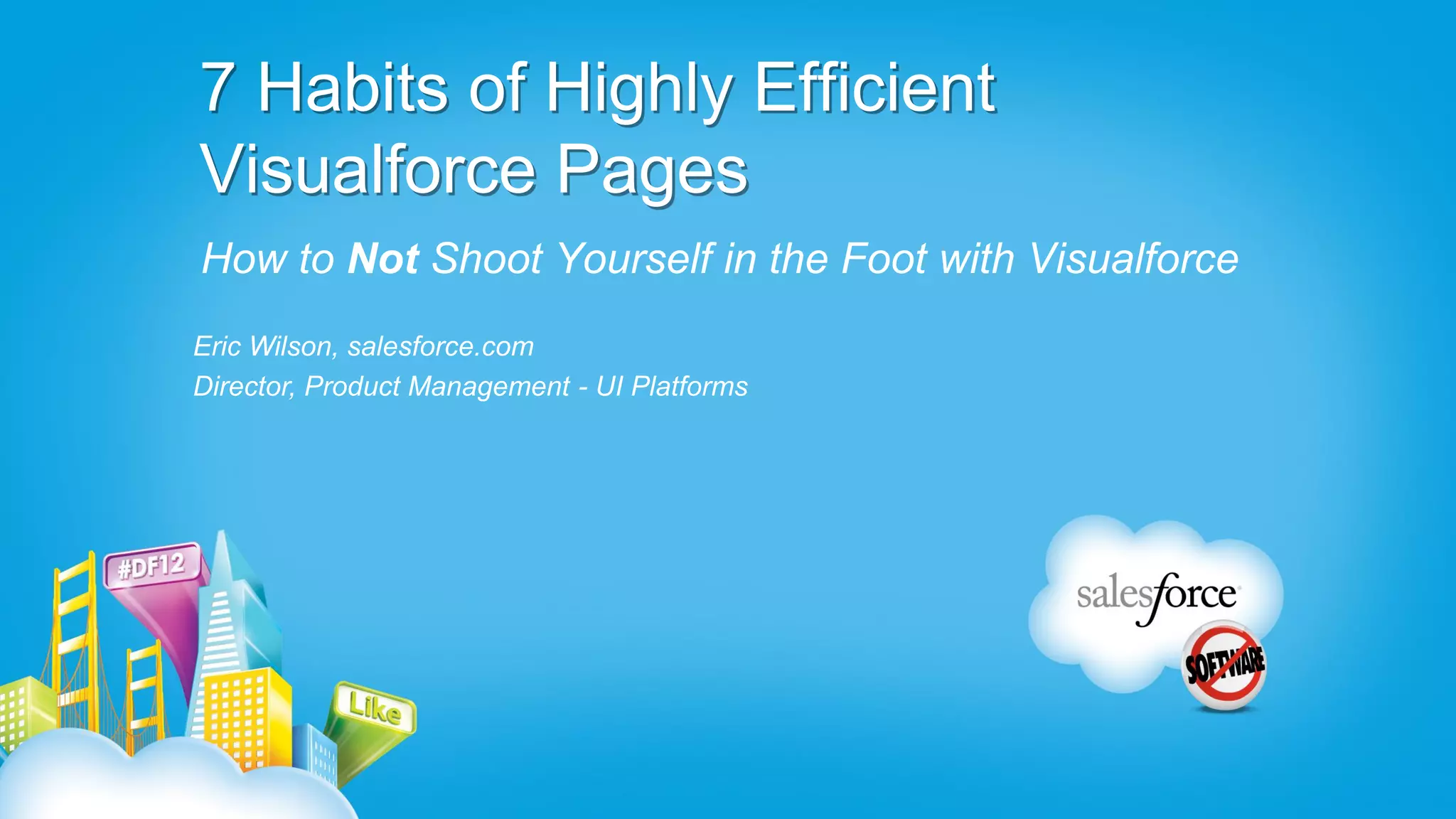 Highly efficient Visualforce pages have rock-solid HTML, CSS, and JavaScript. They do not support a single pixel-perfect UI across all browsers and instead allow for differences. They are also stateless, do not poll servers excessively, and defer difficult work asynchronously using techniques like the transient keyword, Visualforce remoting, streaming API, and the @future annotation.