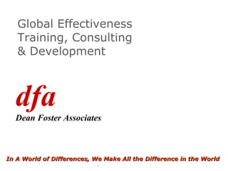 - Cross-cultural training helps expatriates better adapt to living and working abroad, improves performance, and allows organizations to realize a better return on their large international investment. Cultural training costs less than 1% of total assignment costs.
